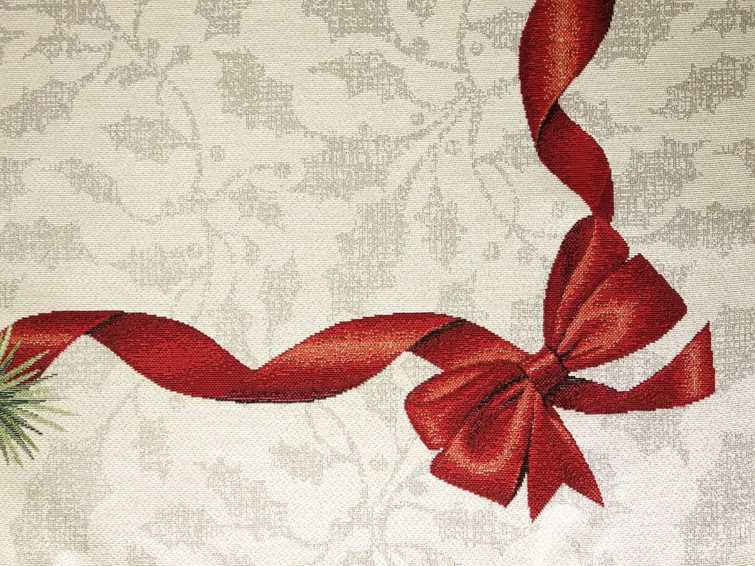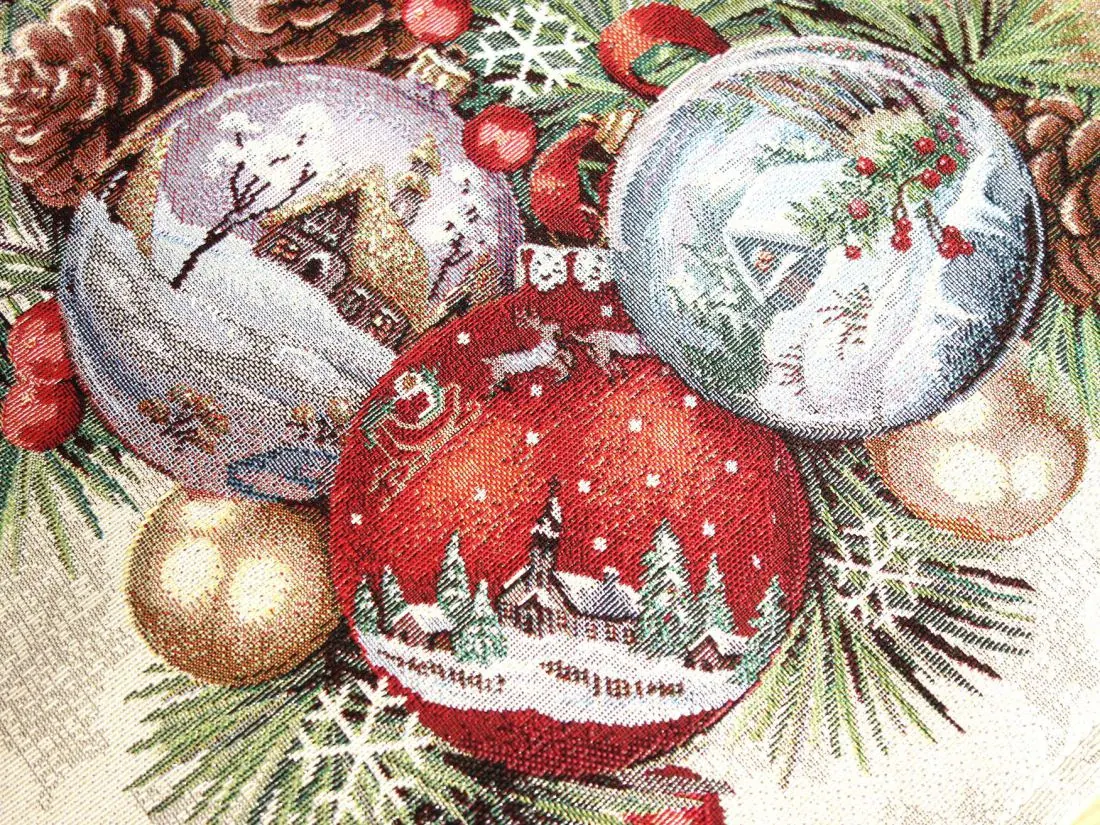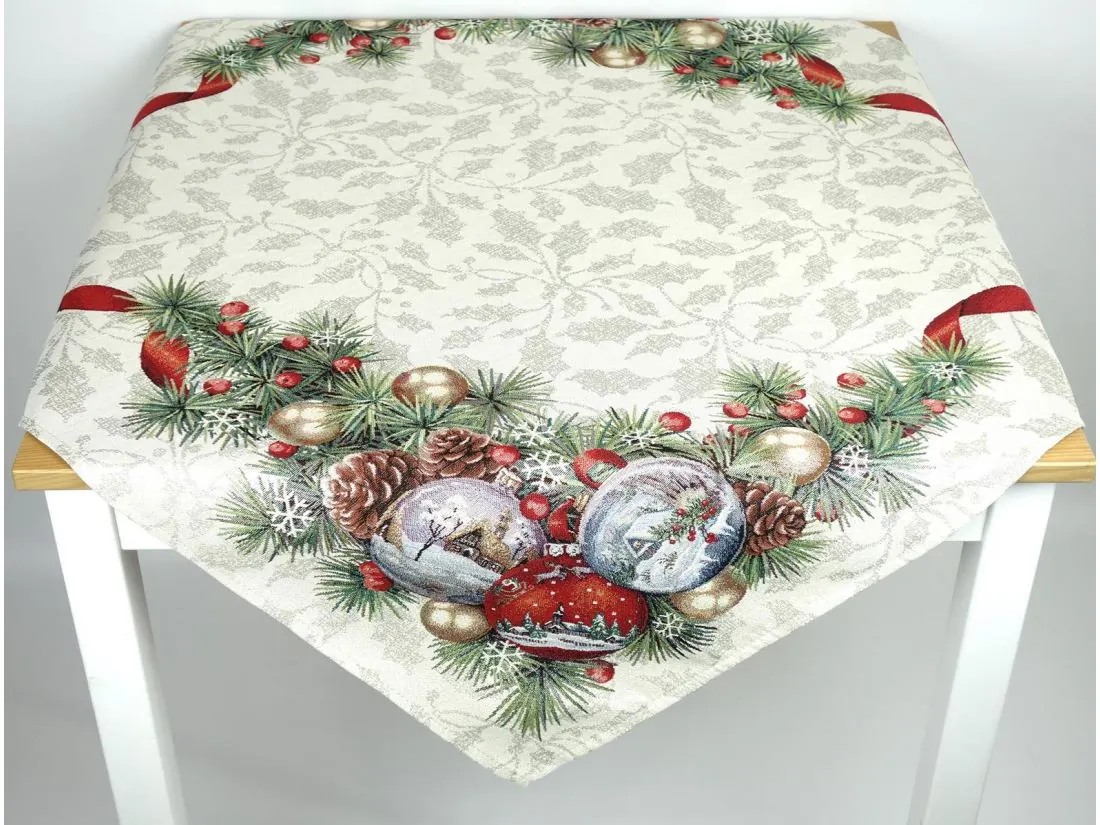 Bieżnik serweta gobelinowy świąteczny 100x100 cm bańki z kokardką wz 204 SlodkieSny
