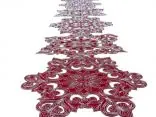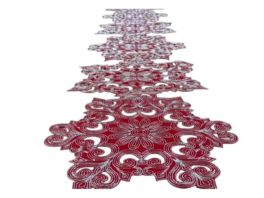 Czerwony bieżnik świąteczny wykonany z poliestru, ozdobiony eleganckim srebrnym haftem, to wyjątkowy dodatek, który wprowadza do wnętrza świąteczną atmosferę. Tkanina z dodatkiem lurexu, z subtelnie wplecionymi srebrnymi nićmi, pięknie odbija światło, tworząc delikatny efekt brokatu i dodając blasku całej aranżacji.
