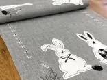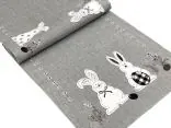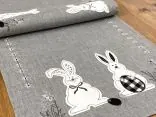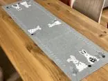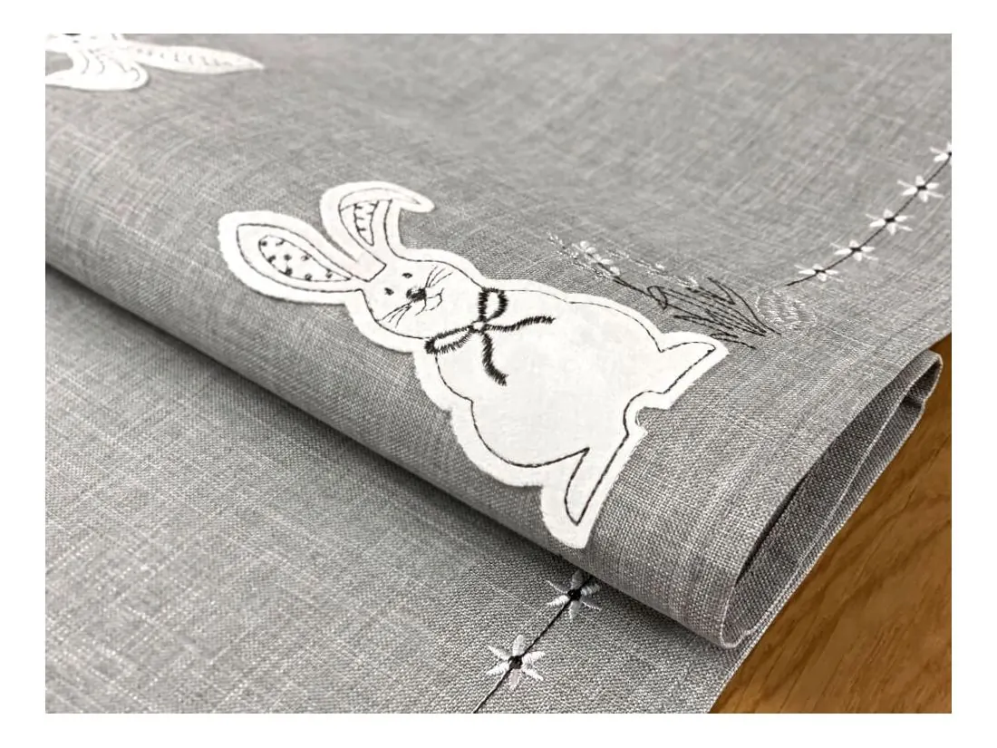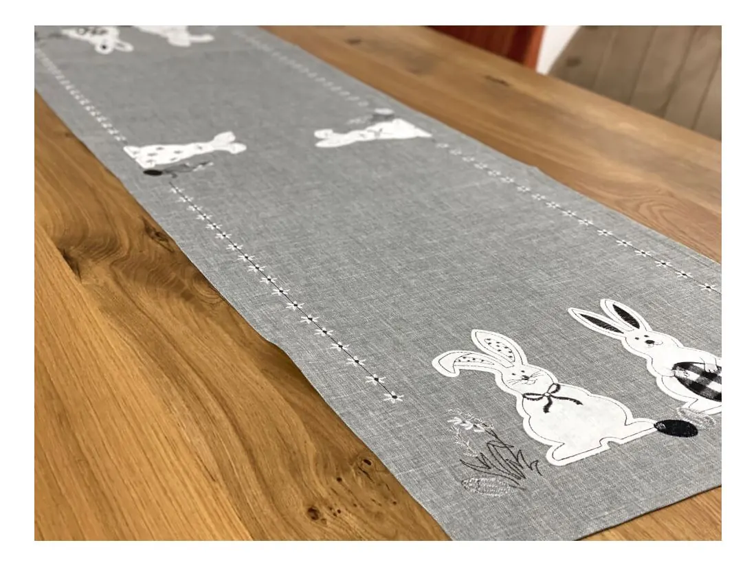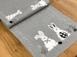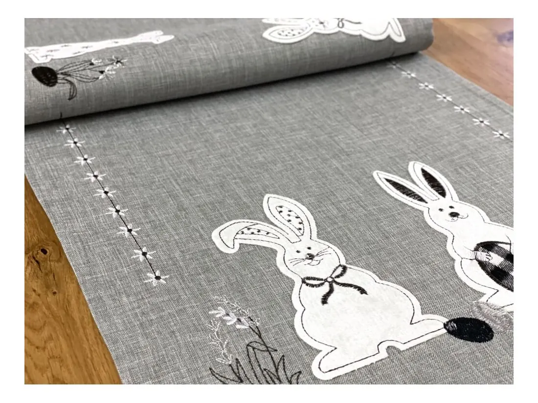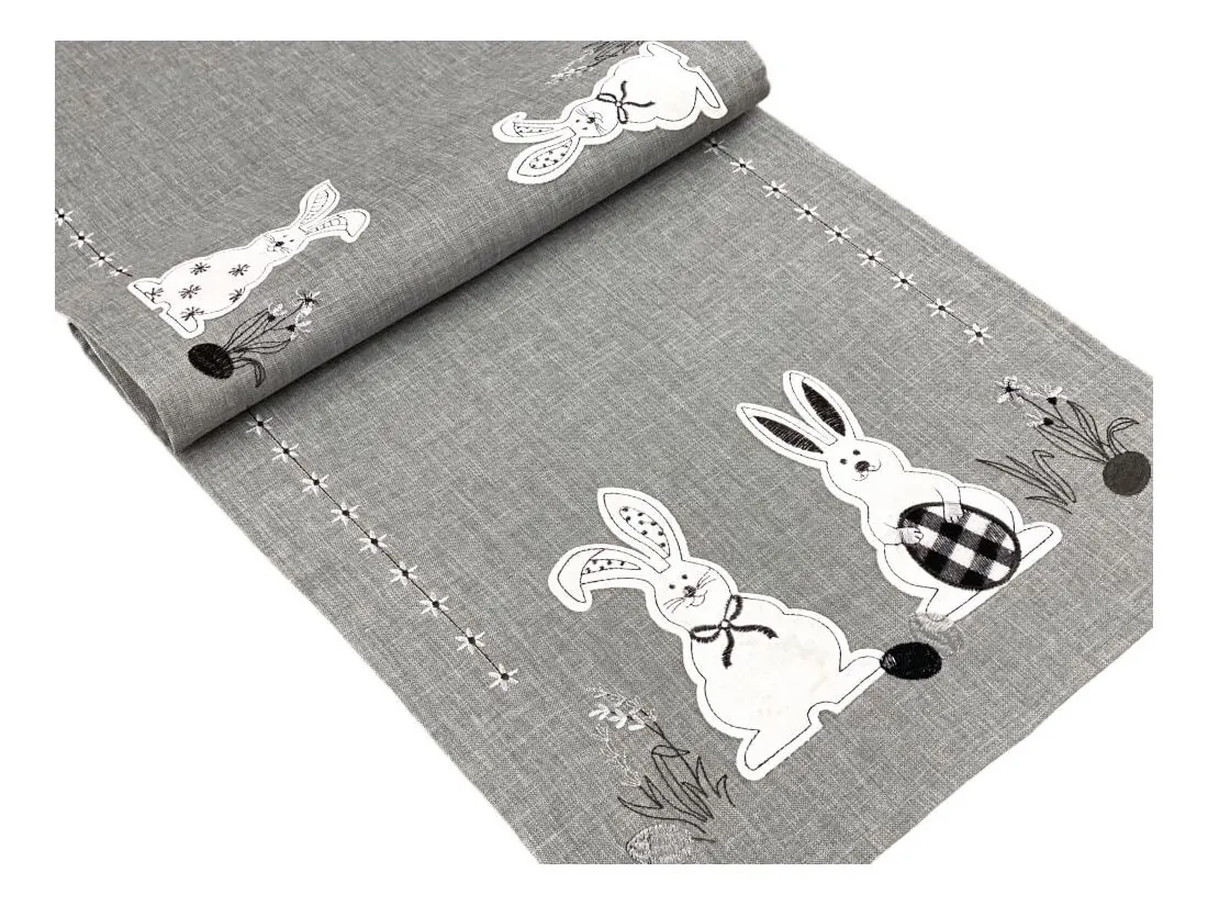Na szarym tle bieżnika znajdują się trzy urocze wielkanocne zajączki, które wprowadzają radosny, świąteczny klimat. Dzięki neutralnej kolorystyce i subtelnemu wzornictwu bieżnik doskonale komponuje się z różnymi stylami wnętrz, nadając stołowi lekkości i świeżości. Świetnie sprawdzi się zarówno na co dzień, jak i podczas wielkanocnych spotkań w gronie najbliższych.