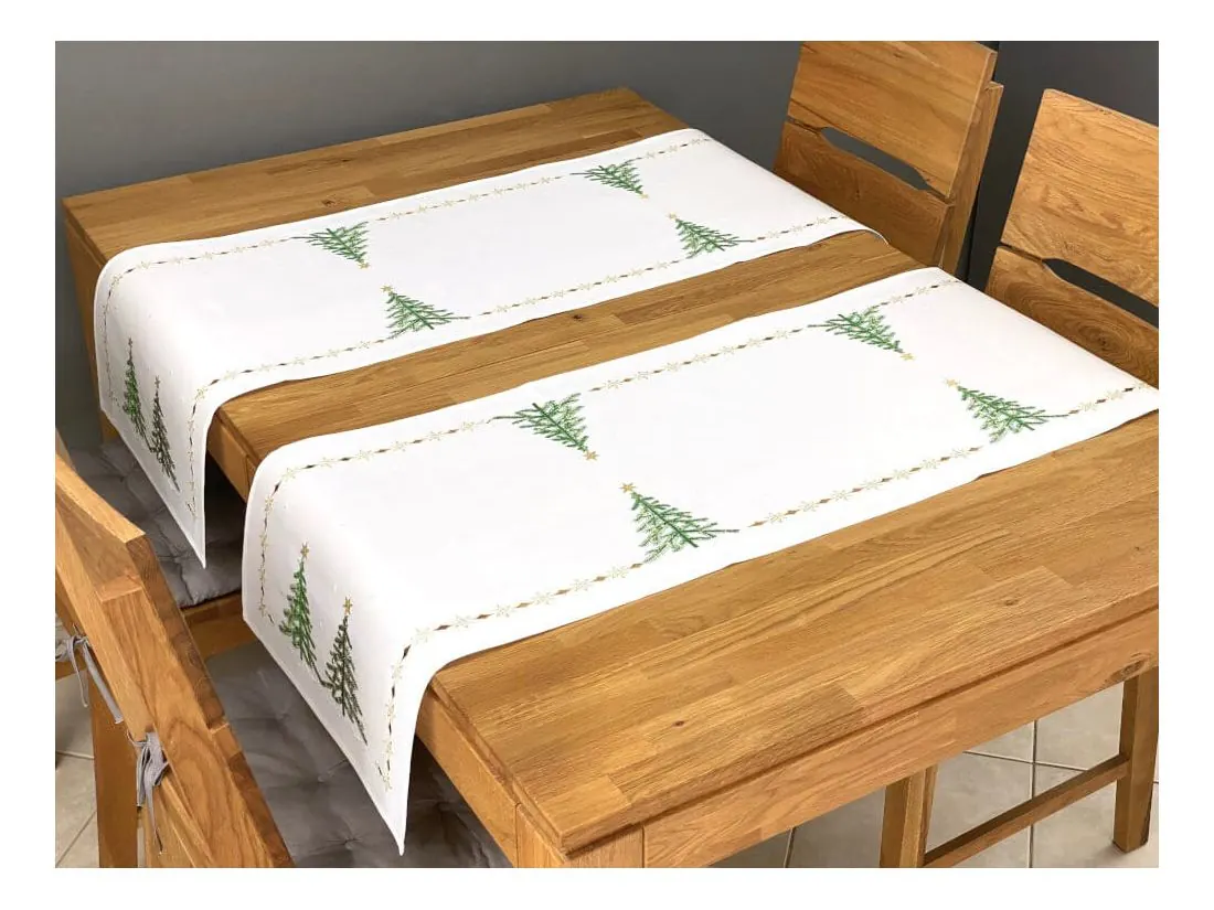 Bieżnik świąteczny biały 40x174 cm int 1196 zielona choinka boże narodzenie 1 szt