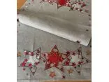 Bieżnik świąteczny w rozmiarze 60x120 cm w kolorze szarym, z bogato zdobioną aplikacja świąteczną czerwono srebrnymi gwiazdkami została wykonana na tkaninie 100 % poliestrowej, charakteryzuje się nowoczesnym designem, świątecznym wzorem oraz modnym kolorem. Aplikacja haftu gwiazdek na nakładce świątecznej jest w kolorze biało czerwonym przeplataną srebrną nitką.