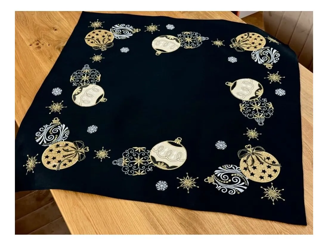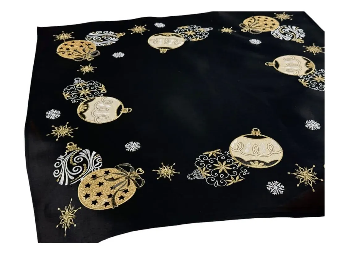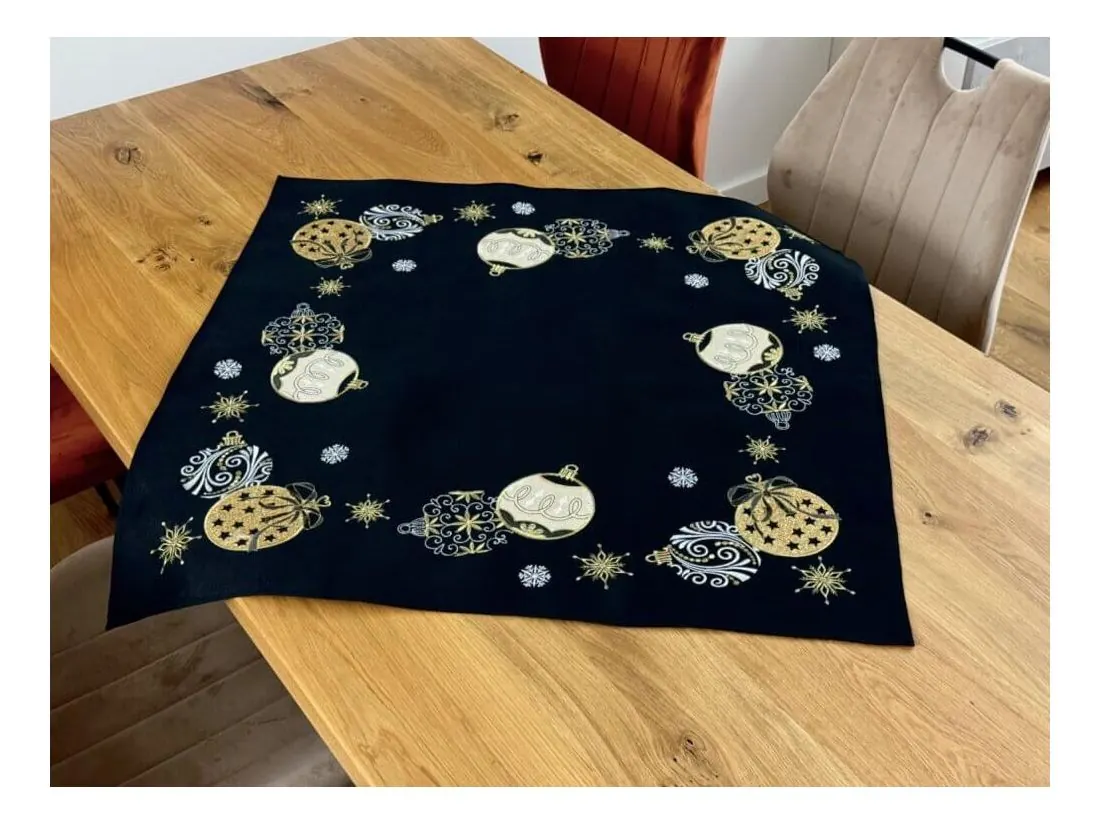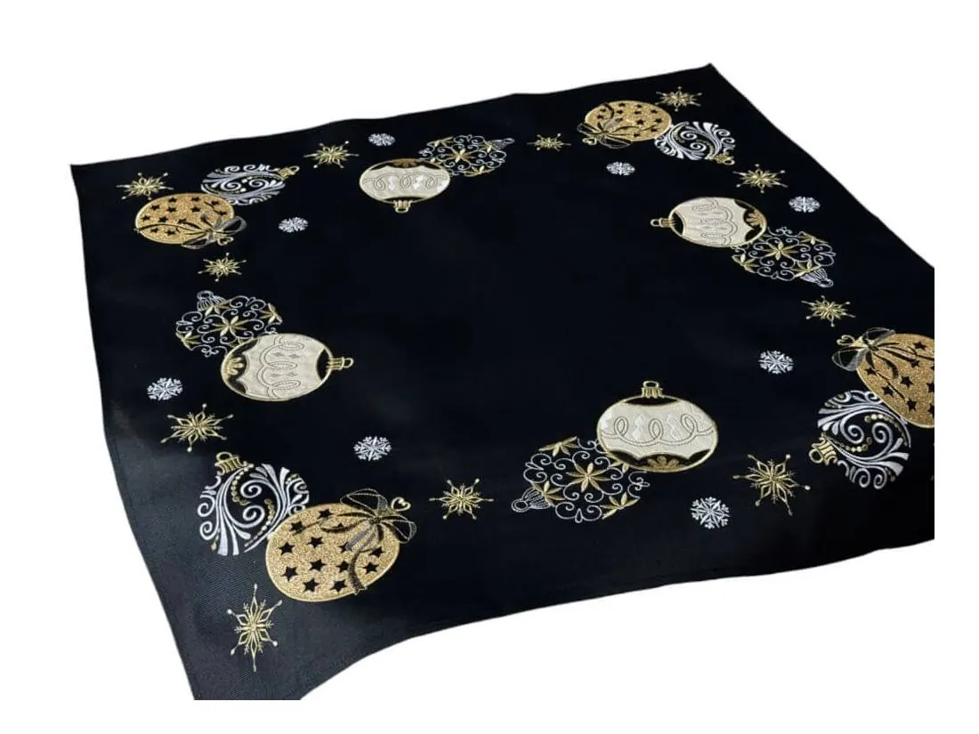 Bieżnik świąteczny złote bombki 85x85 cm int 0537 Boże Narodzenie 1 szt czarny