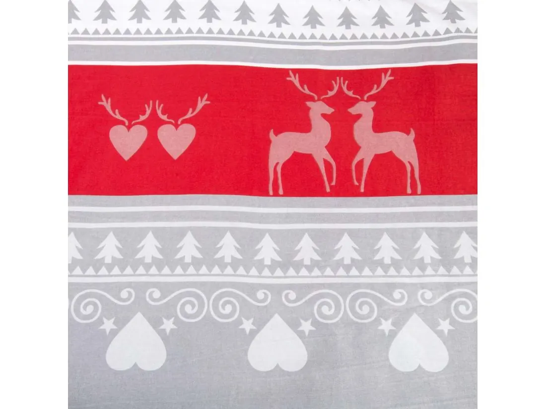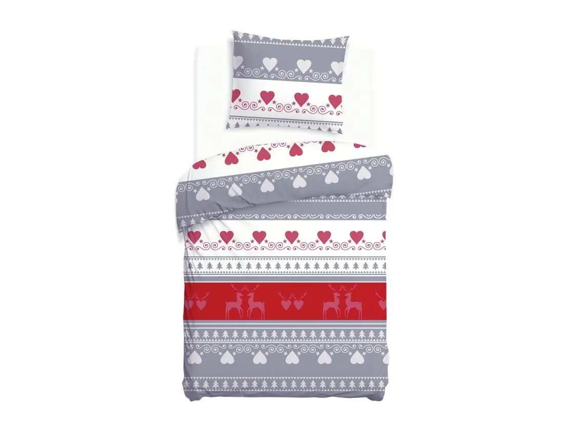 Wprowadź magię świąt do swojej sypialni z tą urokliwą pościelą flanelową! Delikatny biało-szary wzór z reniferami, choinkami i serduszkami w ciepłych, czerwonych odcieniach sprawi, że zimowe wieczory staną się jeszcze bardziej przytulne. Ciepła, miękka flanela zapewni komfort i ciepło podczas chłodniejszych nocy. Idealna na świąteczny prezent lub do stworzenia wyjątkowego nastroju w Twojej sypialni!