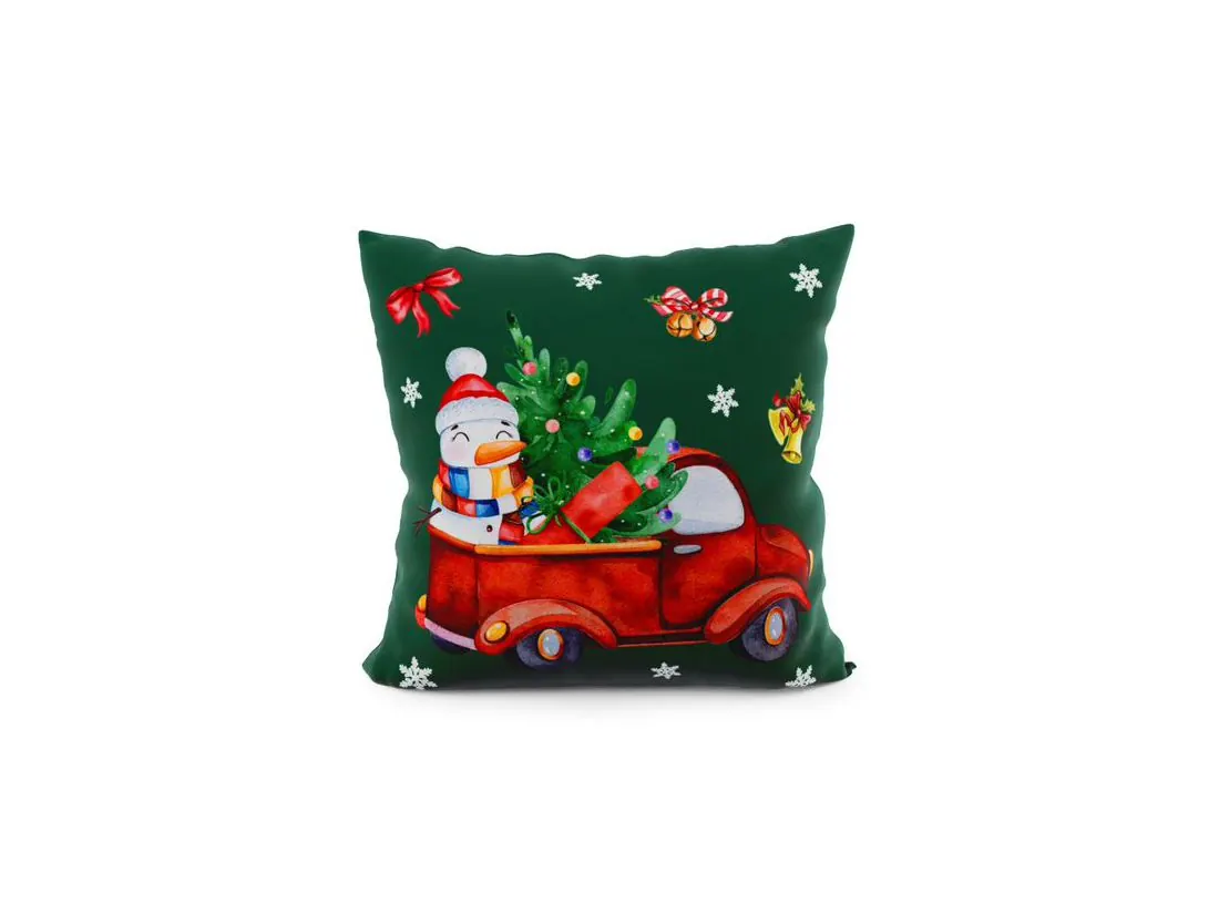Dekoracyjna Poszewka Świąteczna 40x40 Prezenty, Bałwanek Velvet int 027 zielona boże narodzenie - 1 szt