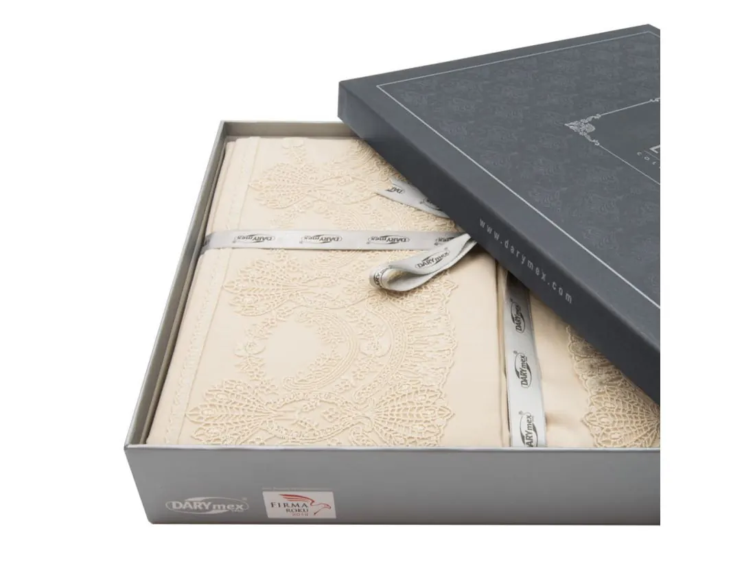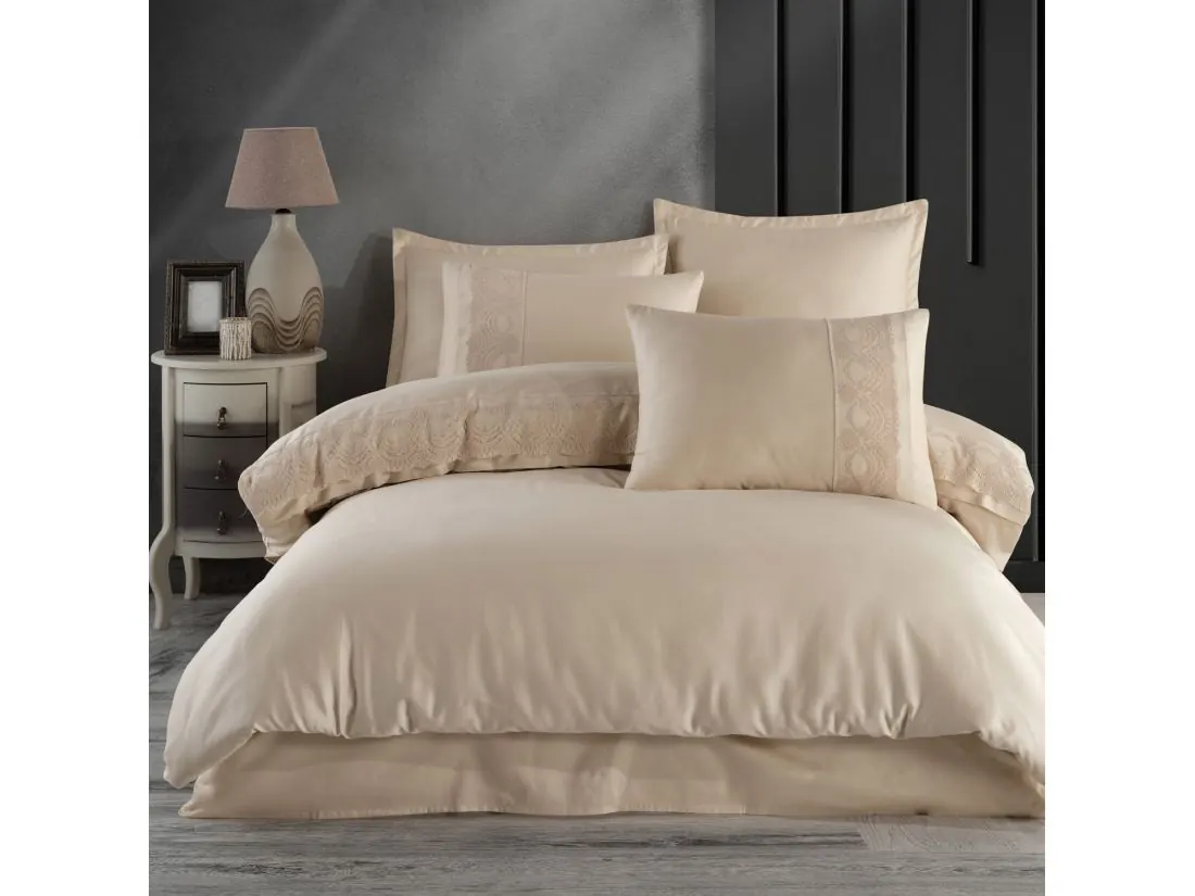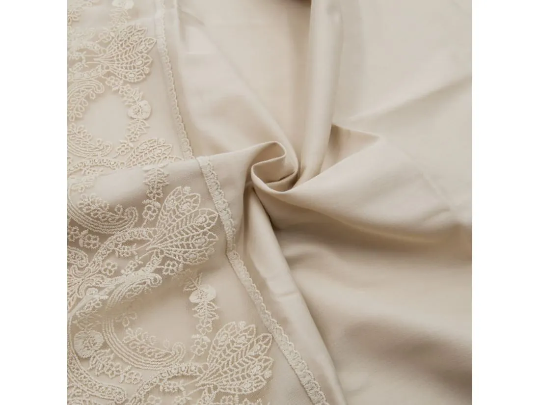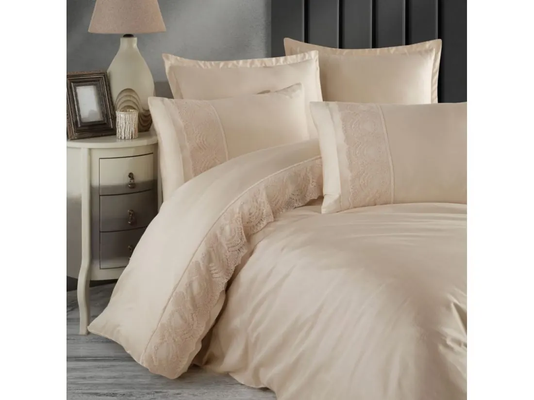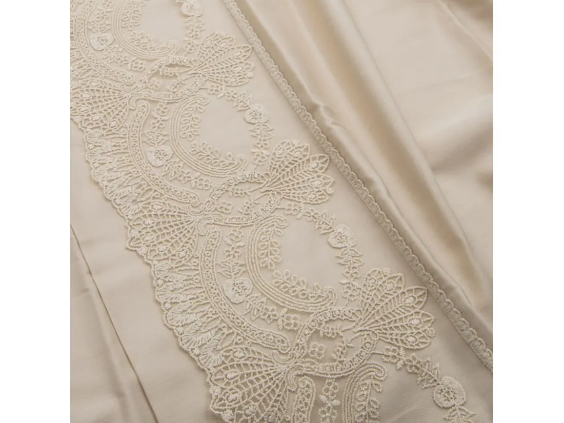 Ekskluzywna pościel satynowa 160x200 z koronką Valeria beż gipiura beżowa