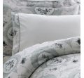 Subtelne połączenie barw w kolorach szaro kremowym jak również przyciągającym kwiatowym wzorem na pościeli tworzy piękną kompozycje, która przypadnie do gustu wszystkim romantykom którzy lubią kwiatowe wzory.