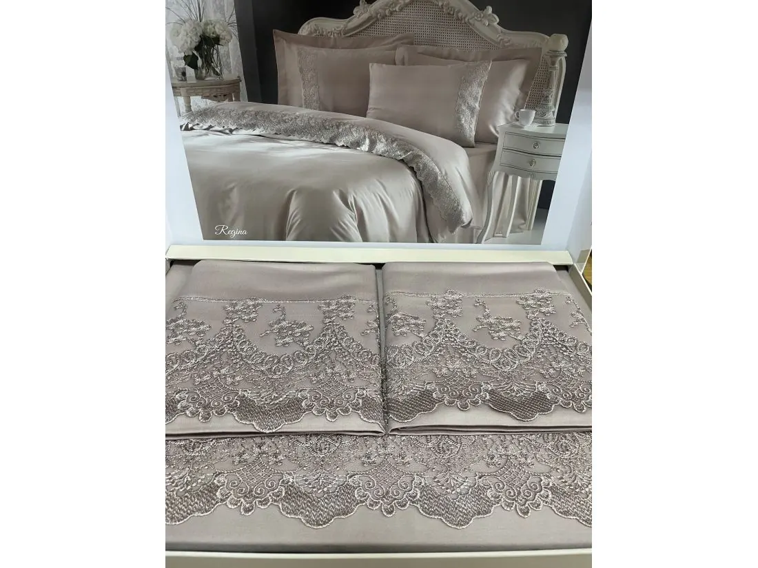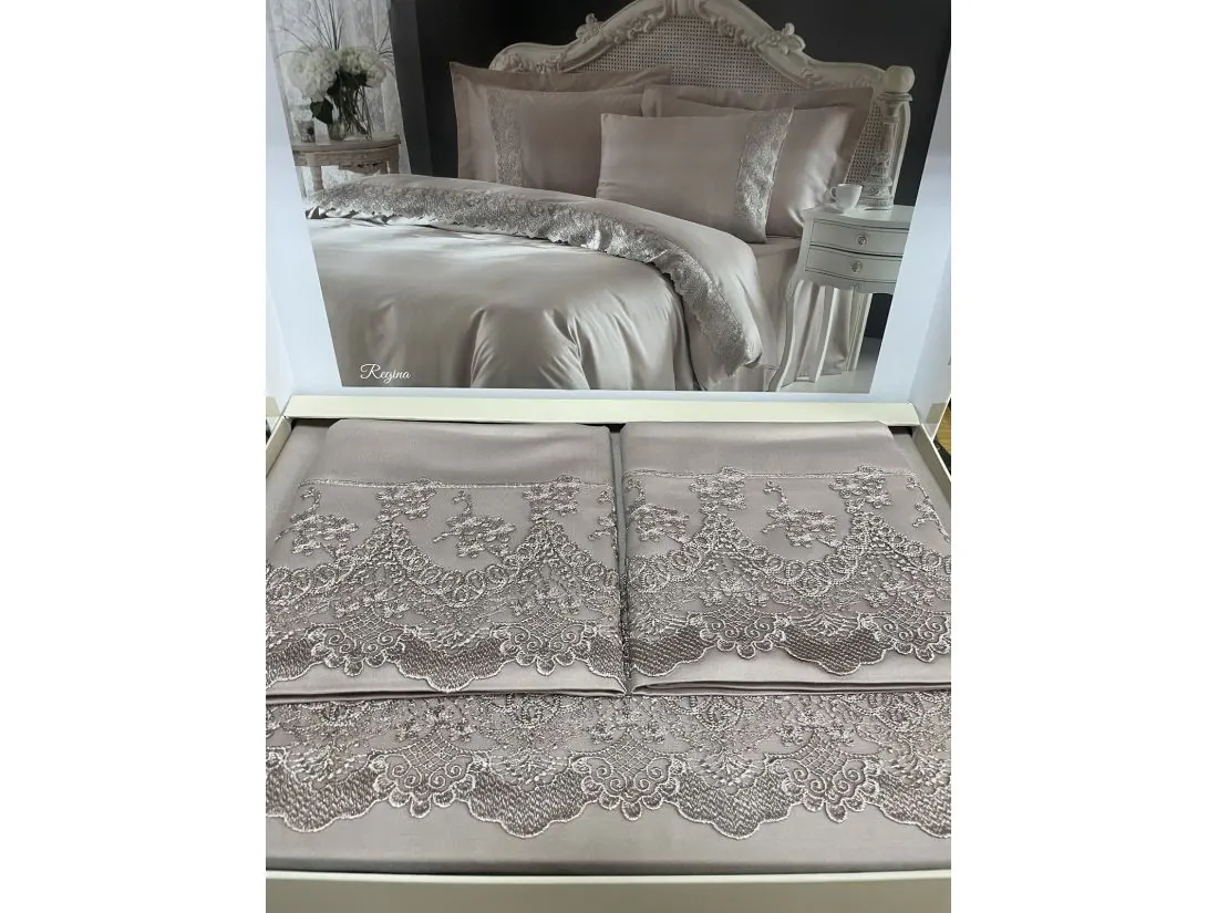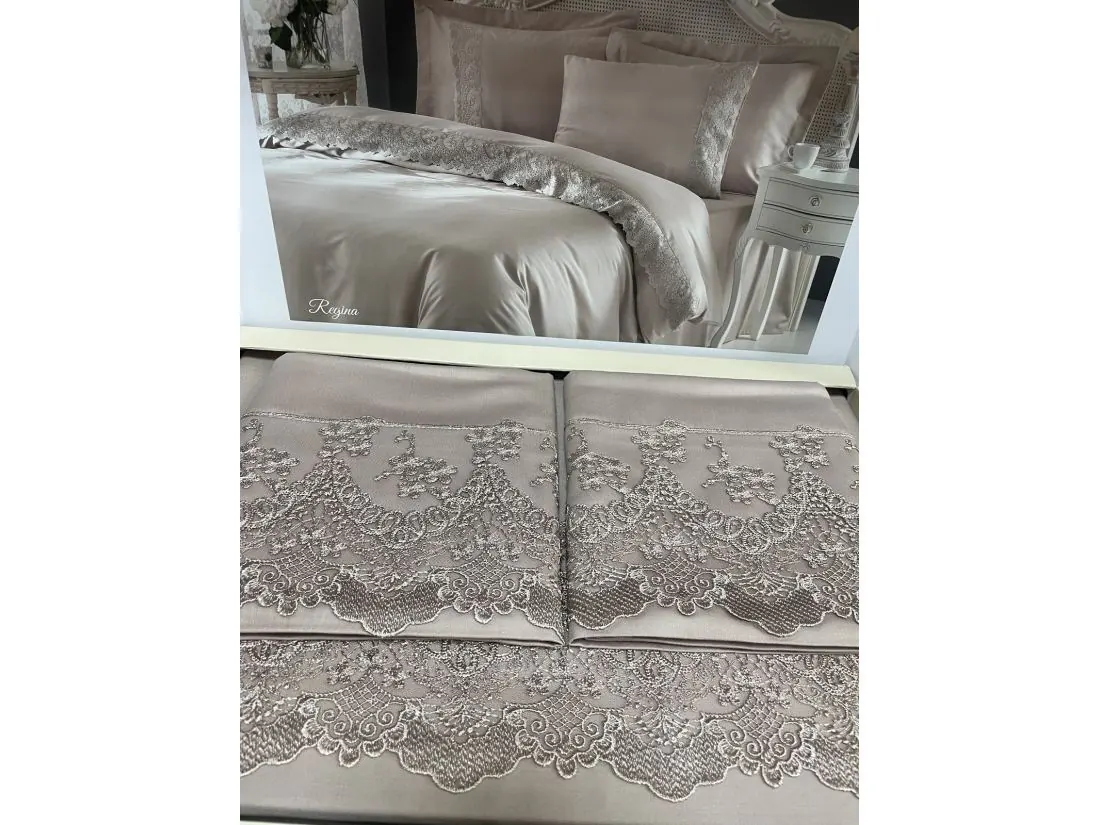 Luksusowa pościel z koronką 6 elementowa wzór Regina Brown w rozmiarze 200 X 220 cm firmy TIVOLYO HOME z kolekcji Guipure, to ekskluzywna pościel dla każdego kto w swojej sypialni ceni luksus i elegancje.