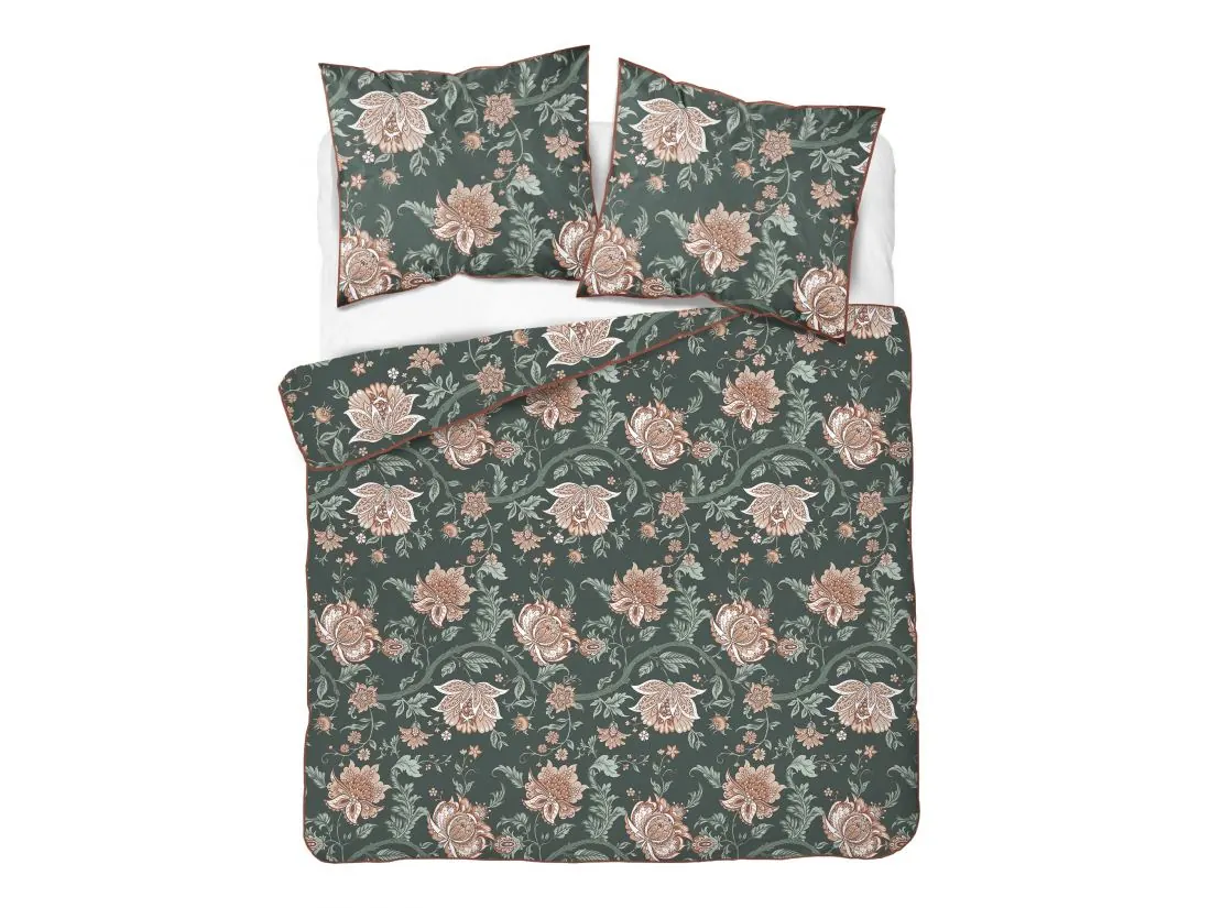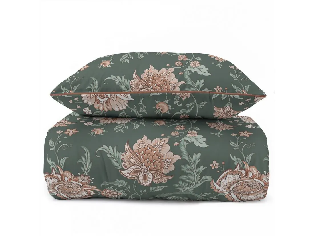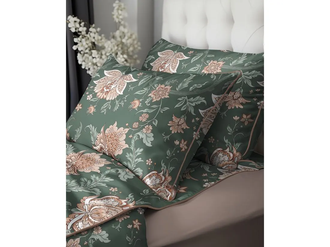 Elegancka pościel z perkalu 220x200 + 2/70x80 z dekoracyjną lamówką + torba orient zielona Lame Percale 5242 a