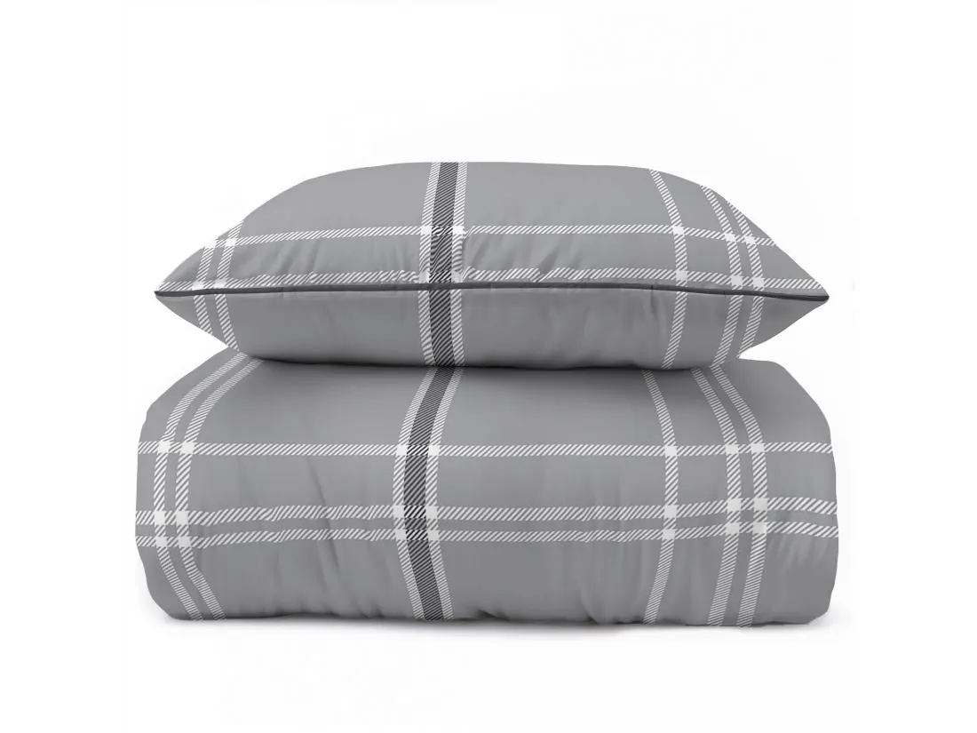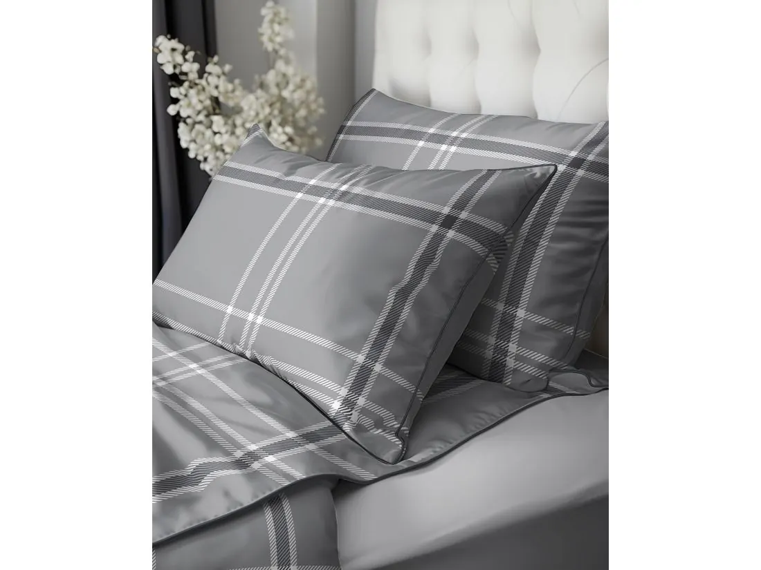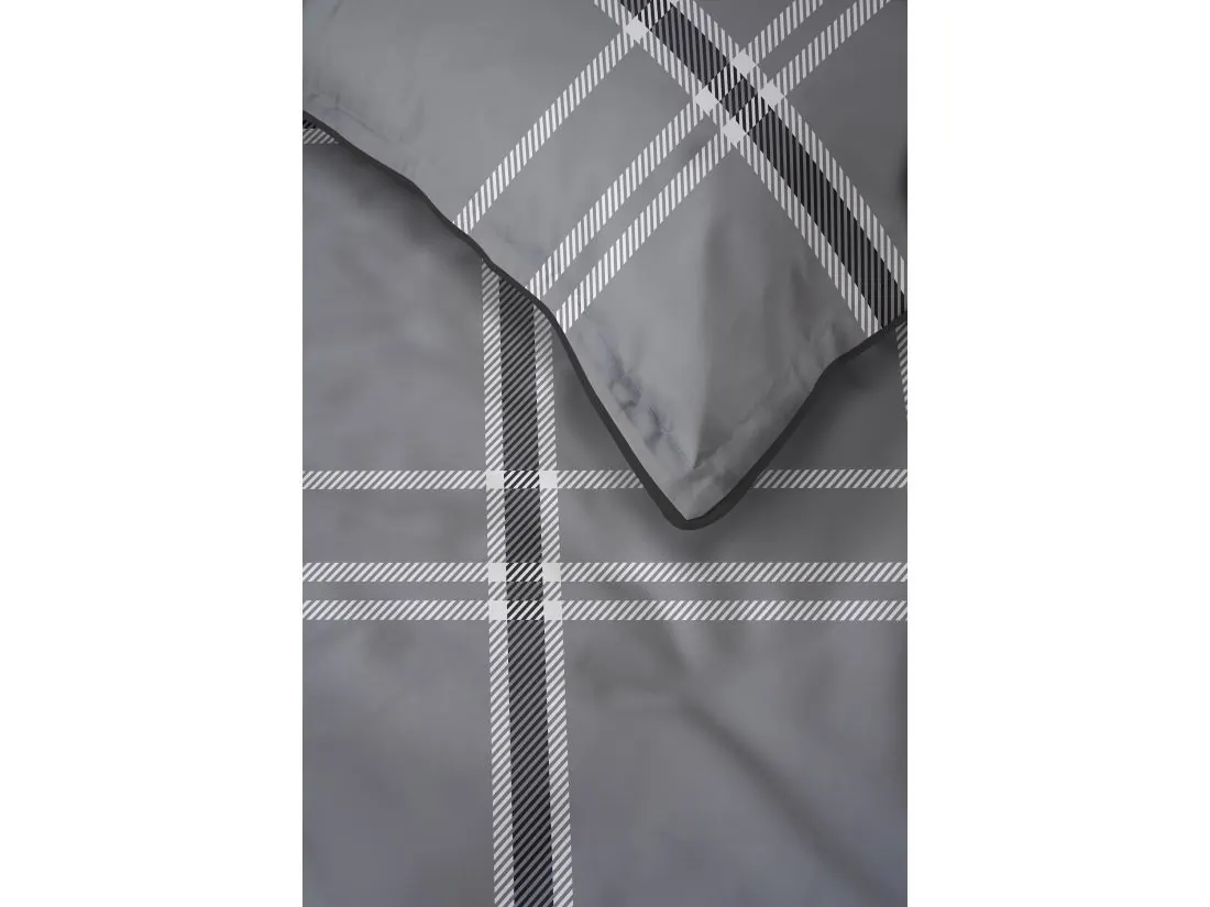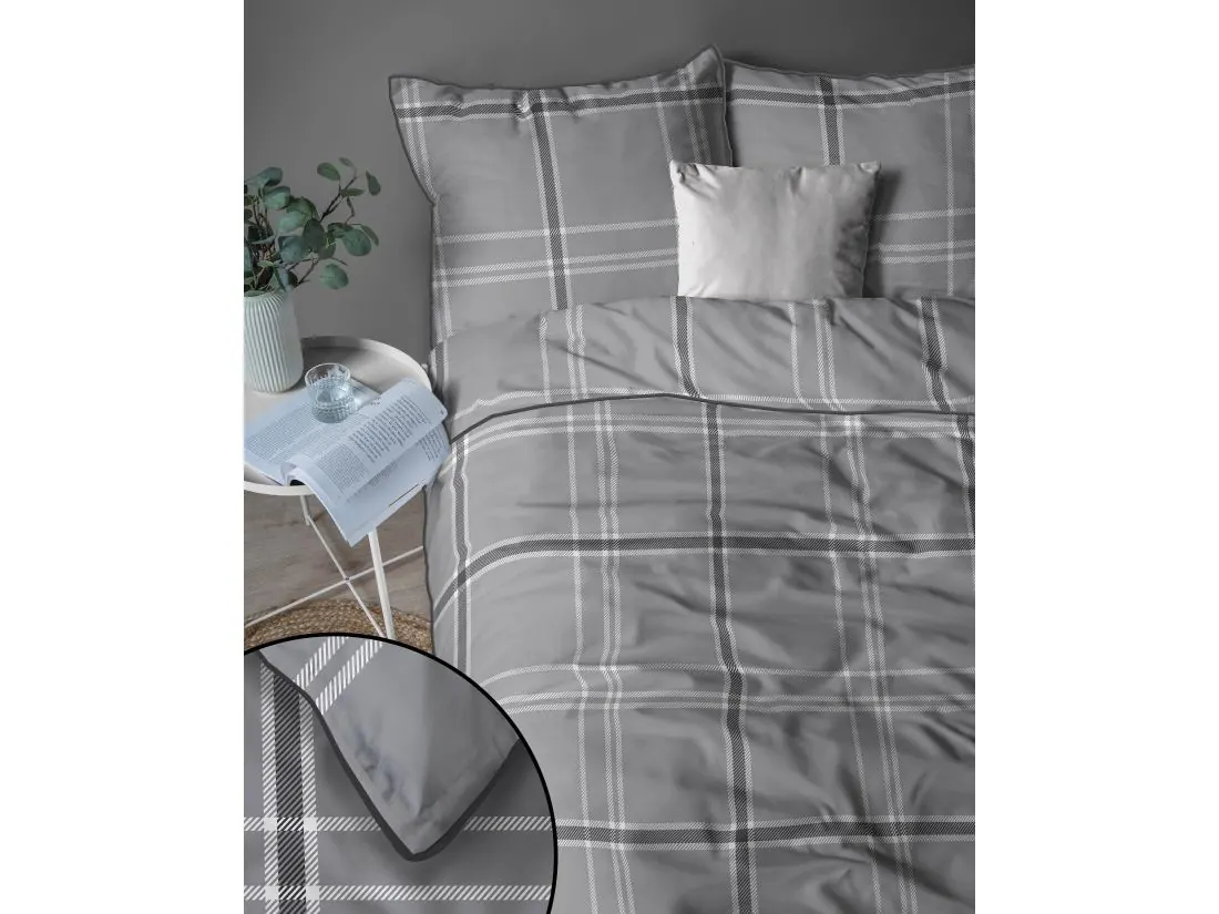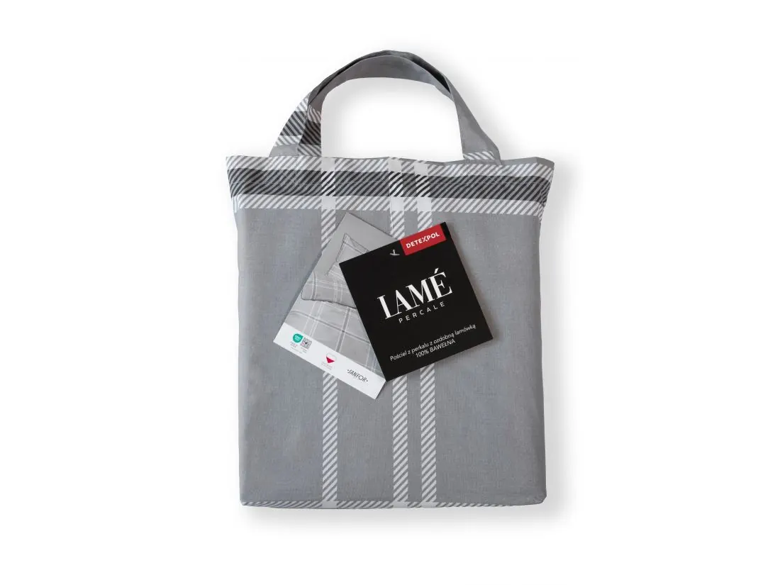 Elegancka pościel z perkalu 220x200+2/70x80 z dekoracyjną lamówką + torba szara kratka Lame Percale 5240 a