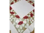 Bieżnik haftowany w rozmiarze 85 x 85 cm w kolorze jasno kremowym z uroczym czerwonym makiem oraz białymi margaretkami w otoczeniu zielonych listków to propozycja dla osób ceniących sobie klasykę oraz przede wszystkim wygodę.