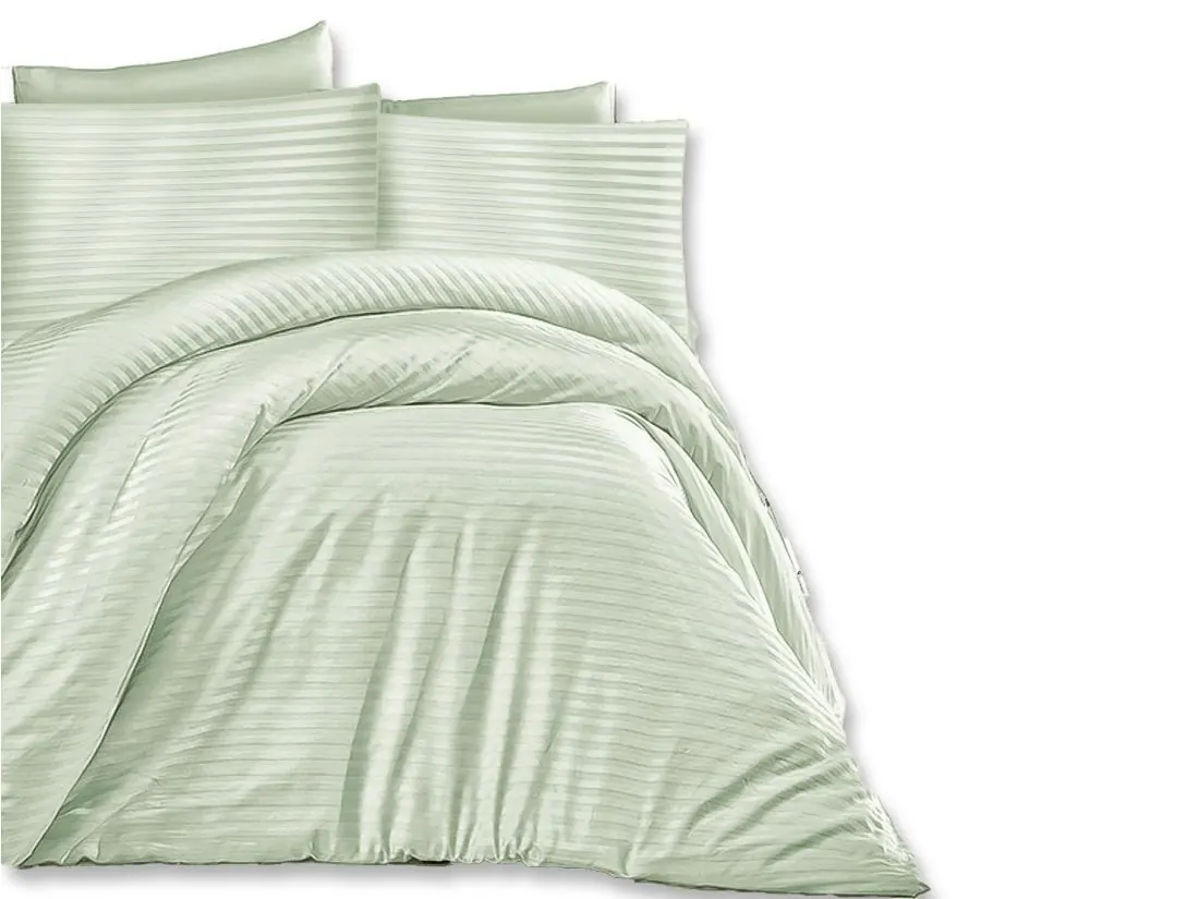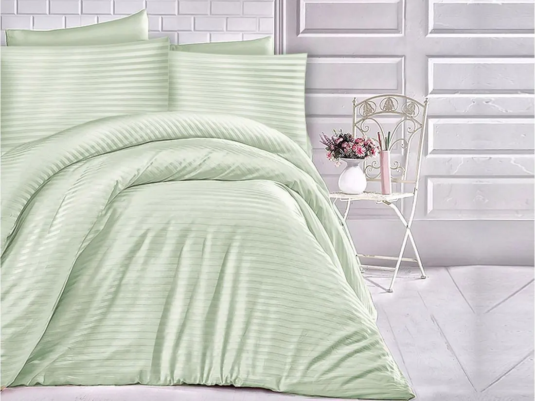 Jednobarwna pościel satynowa w delikatny deseń pasków z kolekcji Luxury model Cizgili Mint w rozmiarze 200 x 220 cm w jasno miętowym kolorystyce.