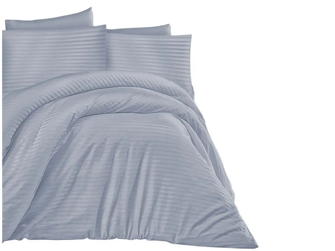 Jednobarwna pościel satynowa w delikatny deseń pasków z kolekcji Luxury model Cizgili Blue w rozmiarze 160 x 200 cm w niebieskiej kolorystyce.