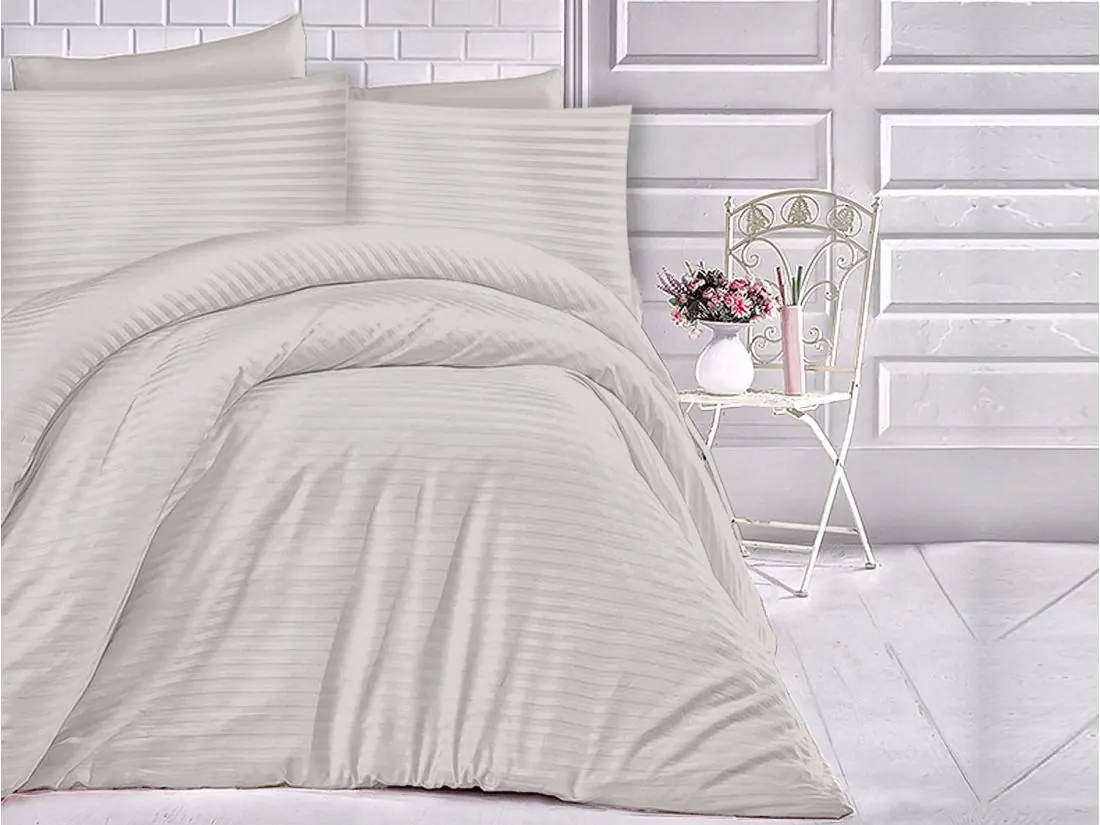 Jednobarwna pościel satynowa w delikatny deseń pasków z kolekcji Luxury model Cizgili Stone w rozmiarze 180 x 200 cm