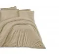 Jednobarwna pościel satynowa w delikatny deseń pasków z kolekcji Luxury model Cizgili w rozmiarze 140 x 200 cm w jasno brązowej kolorystyce.