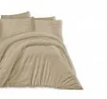 Jednobarwna pościel satynowa w delikatny deseń pasków z kolekcji Luxury model Cizgili w rozmiarze 200 x 220 cm w jasno brązowej kolorystyce.