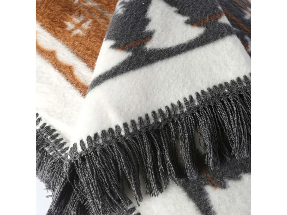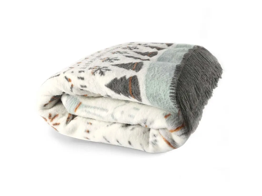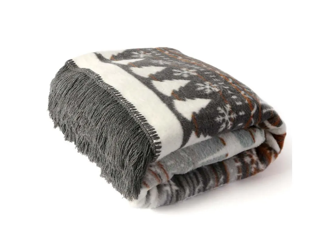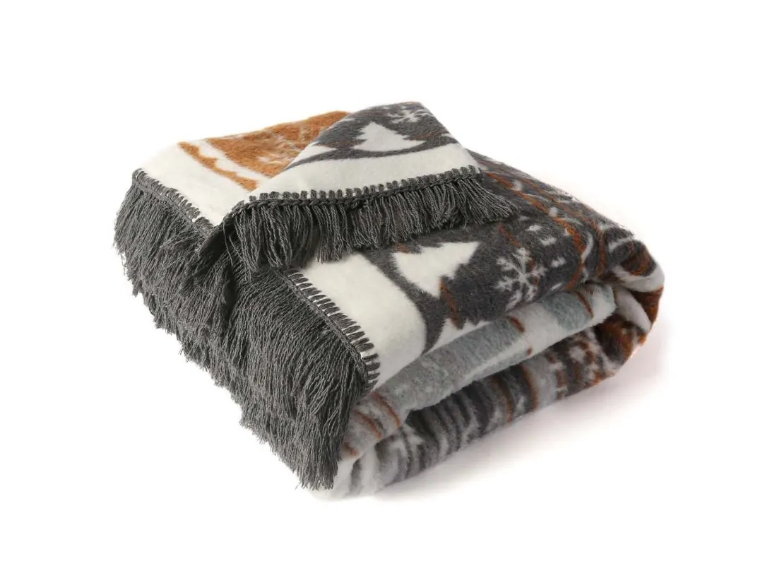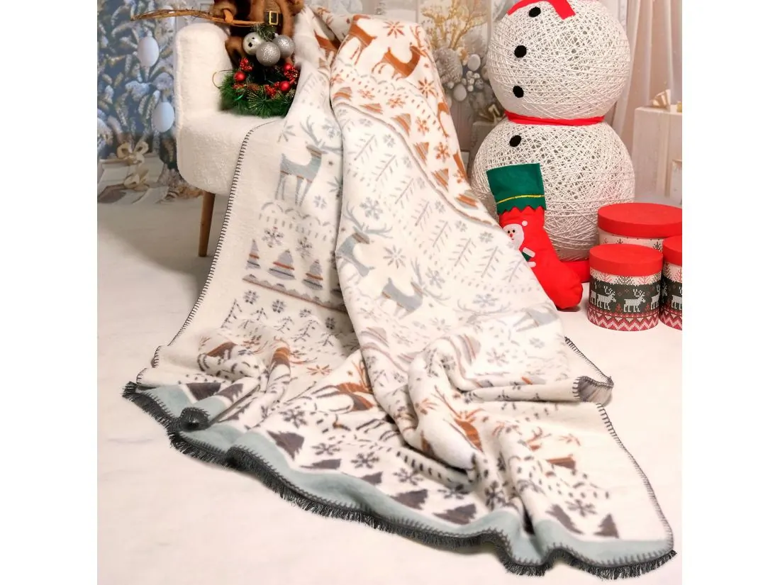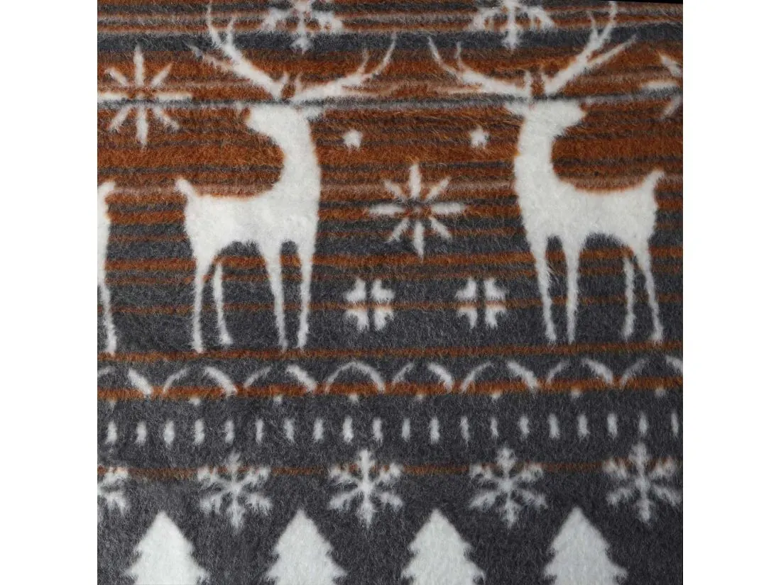 Koc bawełniany 150x200 świąteczny szare renifery z frędzlami – miękki, przytulny i idealny na zimowe wieczory