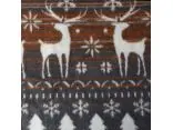 Koc bawełniany świąteczny z frędzlami o wymiarach 150x200 cm zachwyca klasycznym, zimowym wzorem na jasnym tle, który doskonale oddaje ducha skandynawskiej estetyki. Na delikatnym kremowym tle rozpościerają się sylwetki reniferów w stonowanych odcieniach beżu i szarości, uzupełnione śnieżynkami, stylizowanymi choinkami oraz geometrycznymi bordiurami. Całość ułożona jest pasami, tworząc harmonijny i przytulny klimat aranżujący wnętrze na zimowe i świąteczne dni.