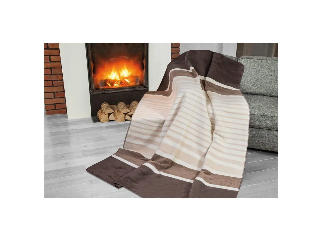 Koc Glamour - Pasy - brązowo - beżowe - Simple Cappuccino - 150x200 Greno