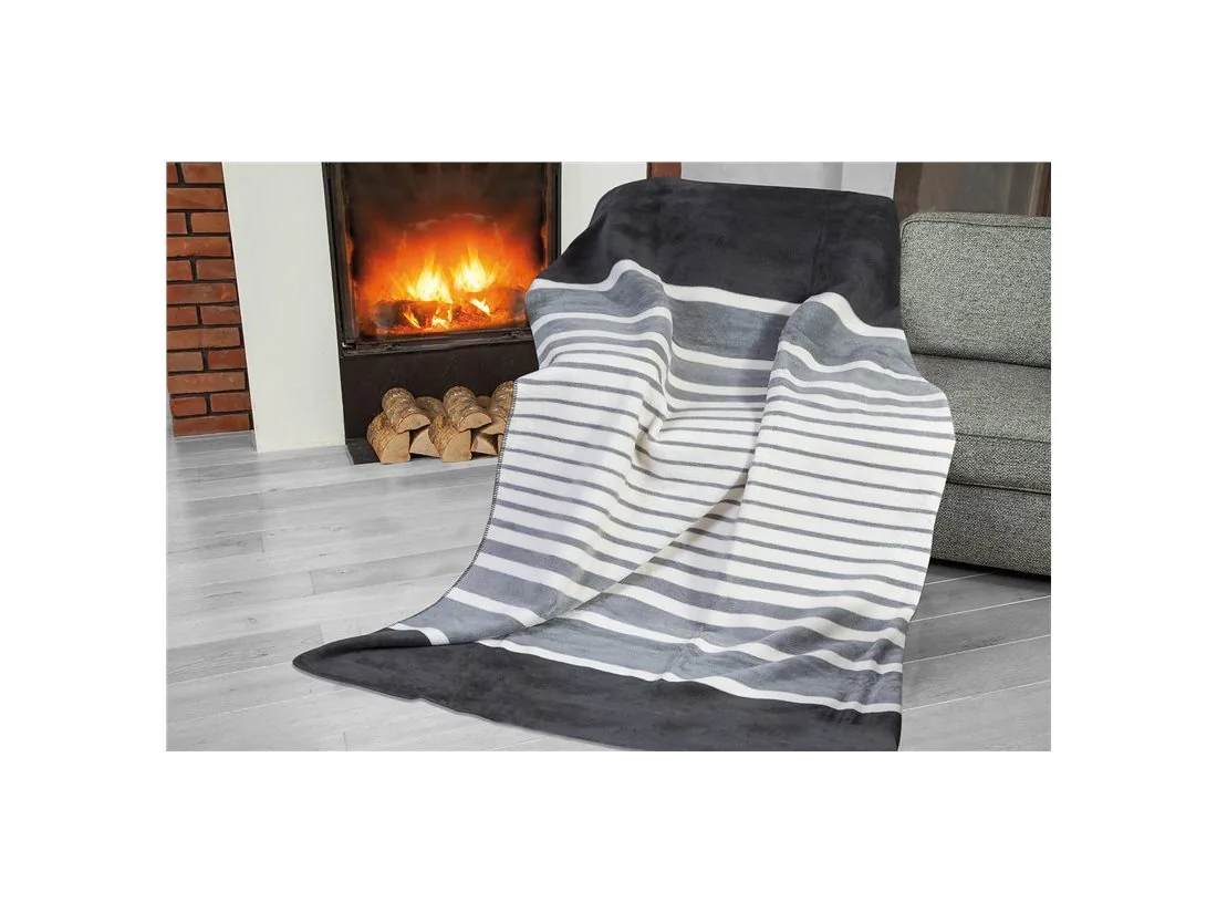 Koc Glamour Pasy grafitowe popielate Simple Stalowy - 150x200 Greno