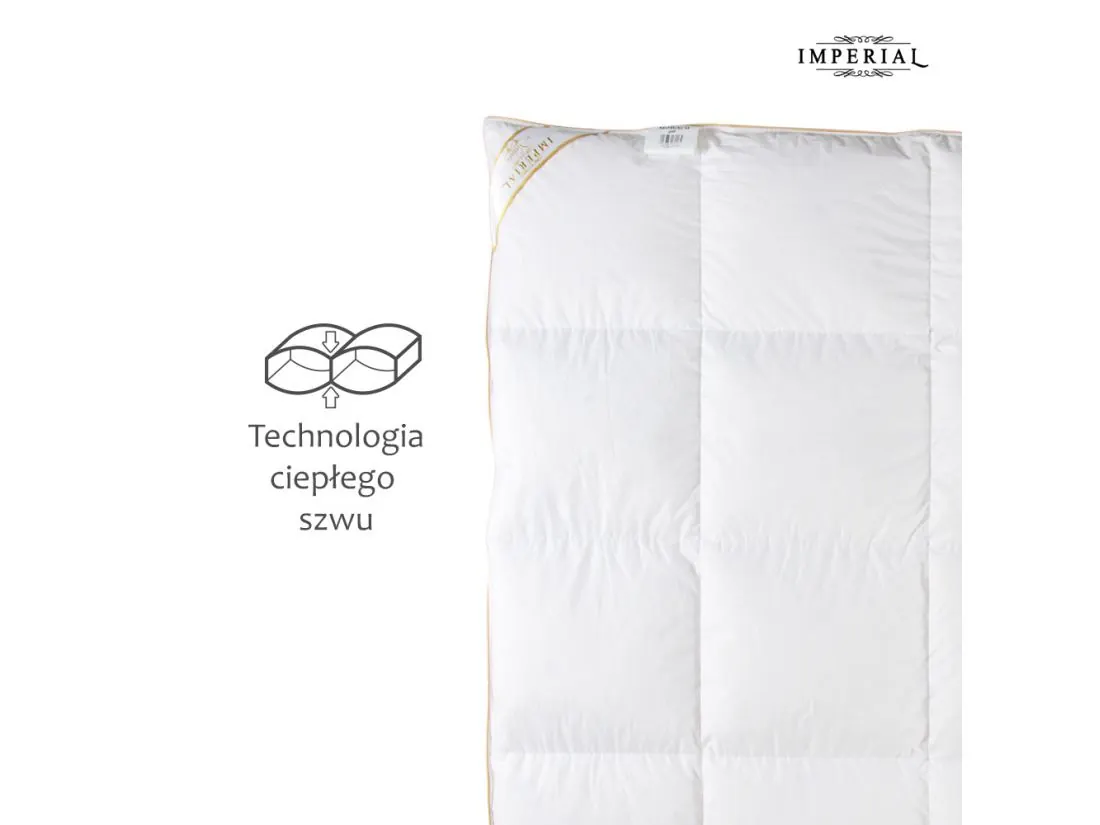 Kołdra wykończona jest złotą bizą co daje jej elegancki wygląd. Komory kasetonowe w kołdrze zapewniają, że puch wewnątrz kołdry nie będzie się przemieszczać dzięki temu pozostaje ona puszysta i równomiernie wypełniona na całej swojej powierzchni przez długie lata. Zastosowanie "ciepłego szwu" dzięki czemu kołdra zapewnia lepsze właściwości termoizolacyjne