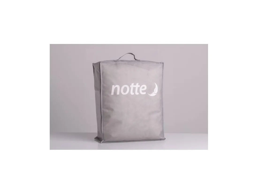 Kołdra Notte Perla Light ma ma odpowiednia ilość naturalnego 90% puchu gęsiego klasy I, który został równomiernie rozłożony w większej liczbie mniejszych kaset w porównaniu do wersji całorocznej i zimowej. Zastosowanie tzw. „zimnego szwu” zwiększa przewiewność produktu, co umożliwia skórze odpowiednią wentylację i komfort termiczny snu. Taka budowa kołdry Light sprawia, że jest ona doskonałym wyborem dla osób, które wolą spać w cieplejszych sypialniach.
