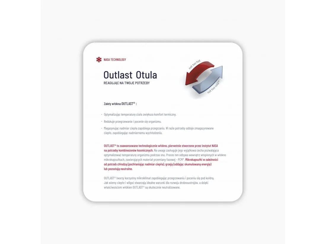 Zapomnij o odkrywaniu się i zakrywaniu w nocy. Włókno Outlast® działa jak inteligentny bufor termiczny: