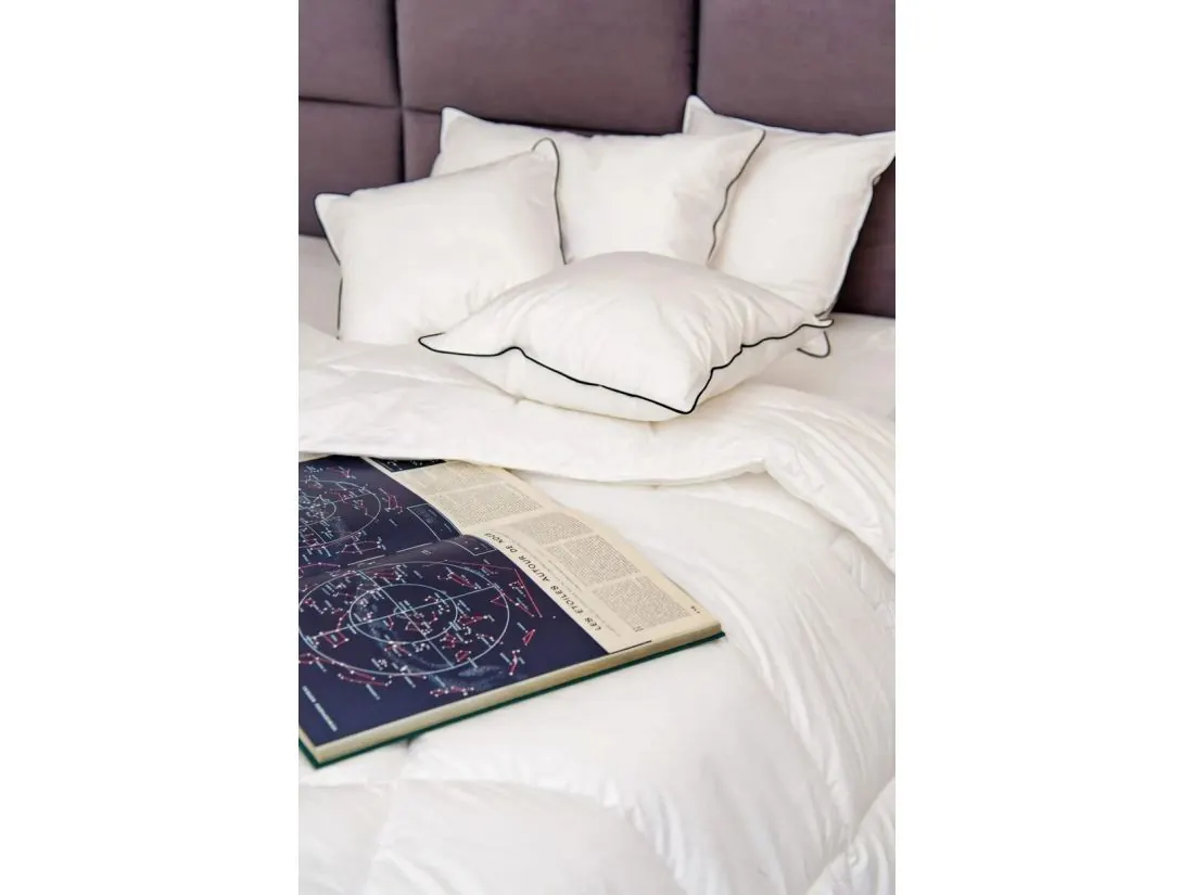 Poszycie kołdry wykonano z 100% bawełny o splocie batystowym. To jedna z najszlachetniejszych tkanin pościelowych – jest gęsta, niezwykle wytrzymała, a jednocześnie lekka i delikatna jak mgiełka. Zapewnia doskonałą cyrkulację powietrza.