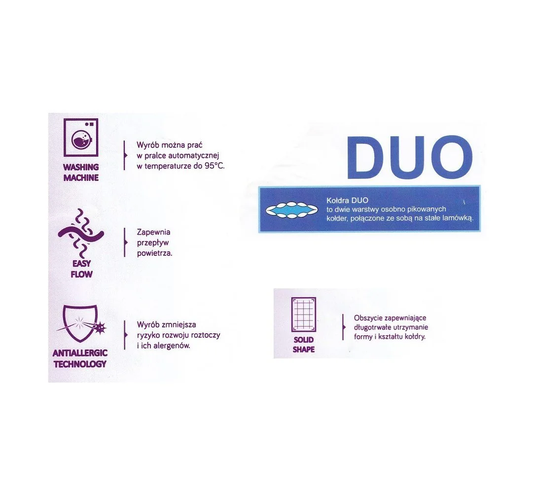 Kołdra zimowa Medical®+ Duo antyalergiczna jest również łatwa w pielęgnacji. Może być prana w temperaturze do 95°C, co jest szczególnie ważne dla osób z alergiami, gdyż wysoka temperatura pomaga w eliminacji roztoczy i drobnoustrojów.