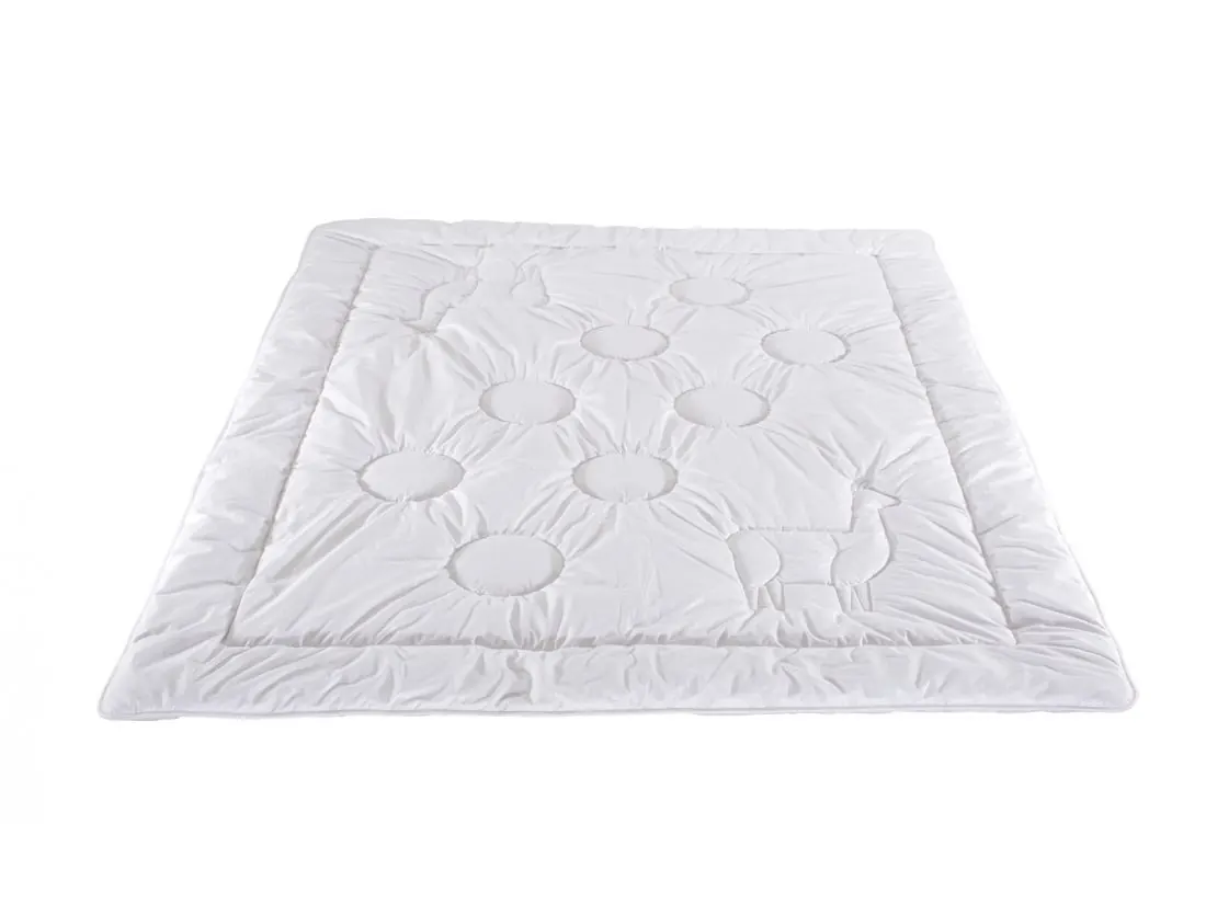 Kołdra Duo to dwie warstwy osobno pikowanych kołder, połączone ze sobą na stałe lamówką. Warstwy wytwarzają komorę powietrzną, zapobiegającą utracie cennego ciepła. Swoimi właściwościami izolacyjnymi przypomina zasadę działania termosu.