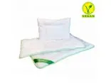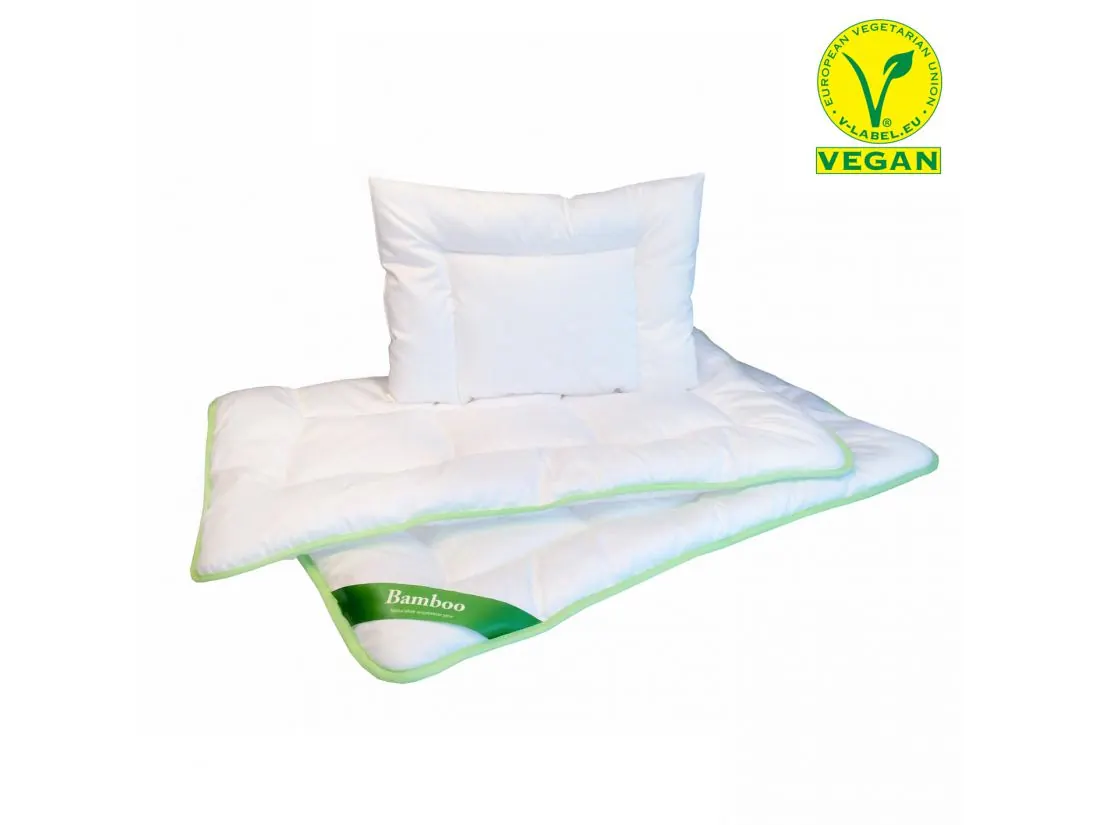 Kołdra i poduszka została opatrzona certyfikatem V-Label potwierdzającym, że na żadnym etapie jego pozyskania, produkcji i przetwarzania nie użyto ani nie zastosowano składników i substancji pochodzenia zwierzęcego.
