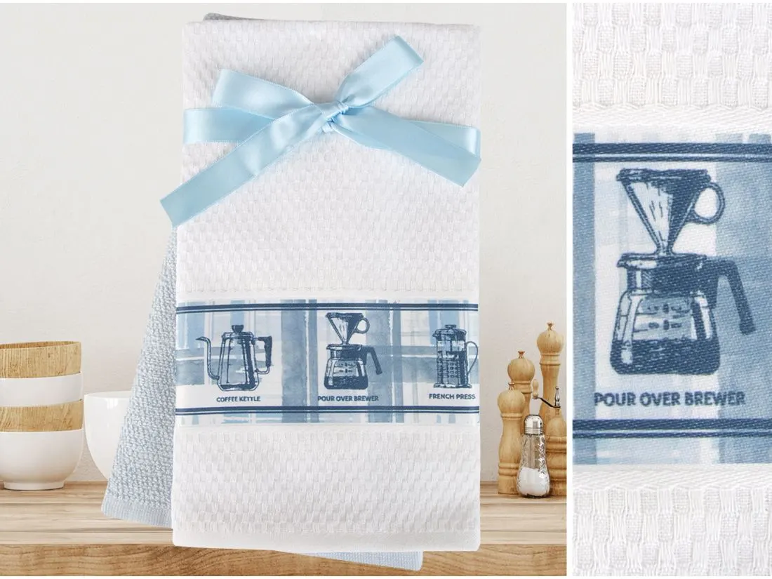 Komplet kuchenny 40x60 cm 3 D biało niebieski 2 szt koffee