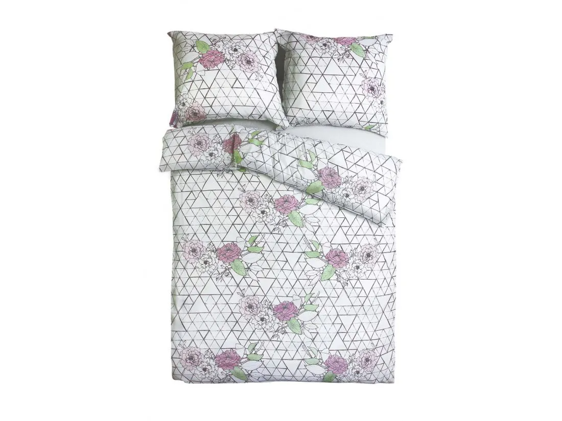 Komplet pościeli satynowej - Sweet Home - w kwiatki i trójkąty - 140x200 +70x80 - Bonus 12 - wz. 18573/1 - Andropol
