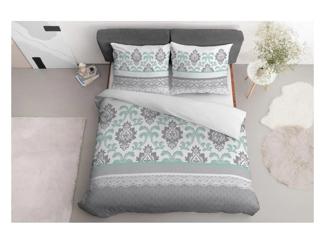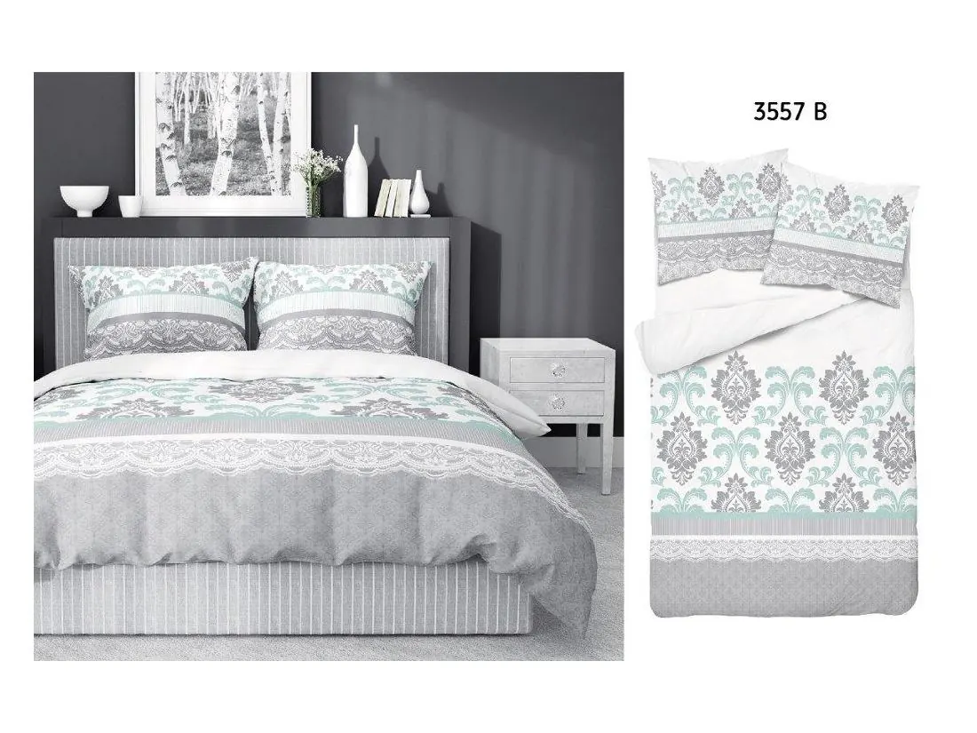 Kpl.pościeli z bawełny - 220x200 - 3557 b - Ornament miętowy- Detexpol