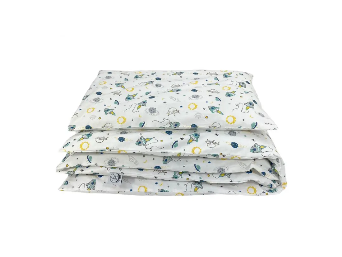 Komplet pościeli z bawełny 90x120 + 40x60 rakiety, kosmos dla dzieci