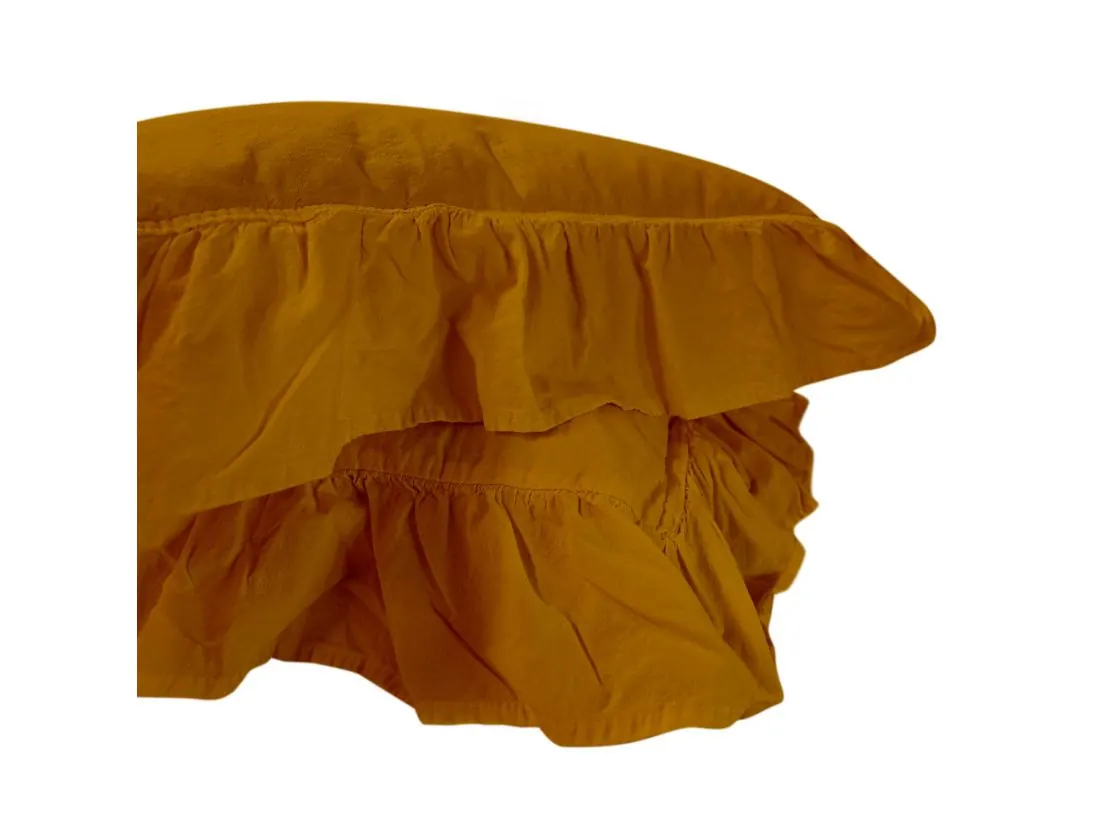 Poszewki bawełniane z falbanką z kolekcji limasso 2 szt w rozmiarze 40x40 typu jaś, została wykonana ze 100 % bawełny w kolorze musztardowym. Poszewka zapinana na zakładkę.