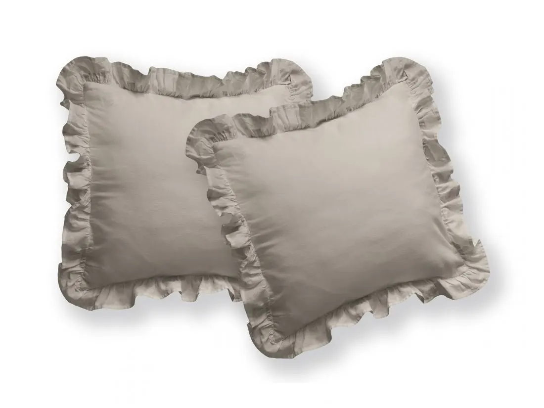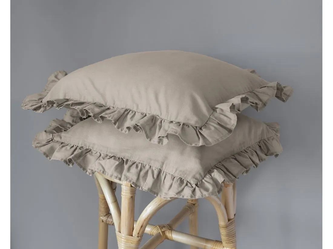 Komplet poszewek bawełnianych 2x40x40 z falbanką taupe 2 sztuki ciemnobeżowy jednobarwne