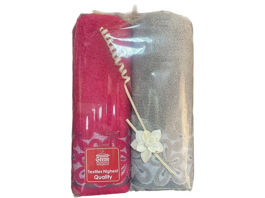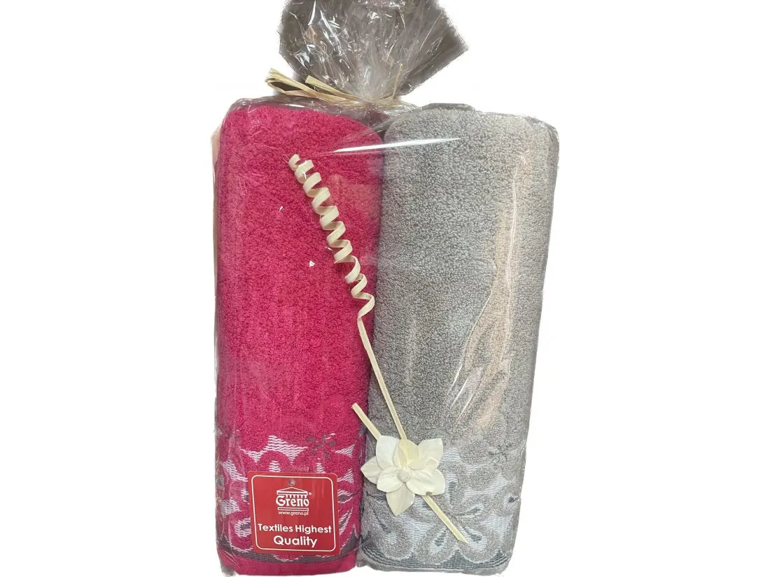 Komplet ręczników II - Bella 2/70x140 - popielaty, fuksja upominek na prezent