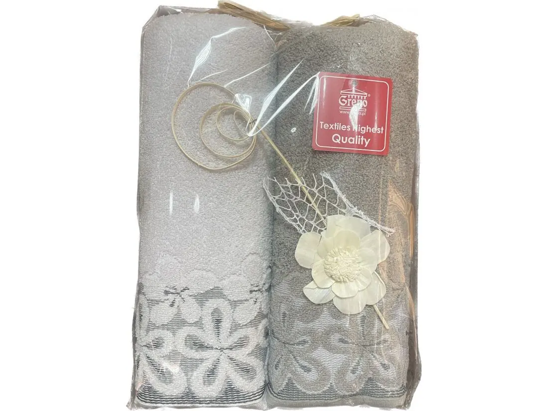 Komplet ręczników II - Bella 2/70x140 - popielaty, gołębi upominek na prezent