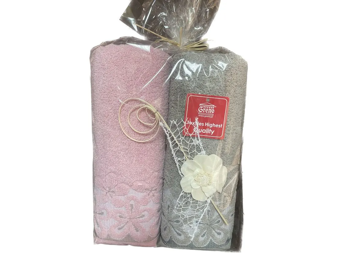 Komplet ręczników II - Bella 2/70x140 - popielaty, różany upominek na prezent