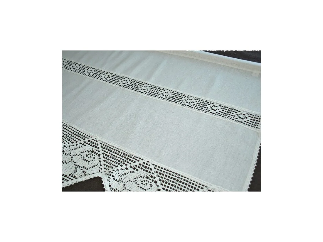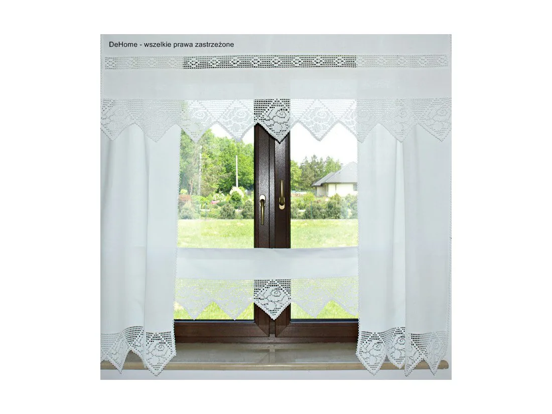 Dekoracyjny lambrekin w rozmiarze 70 x 100 cm /wys/dł/ w kolorze białym wykończona ozdobną koronką nada niepowtarzalny klimat każdej jadalni, kuchni.