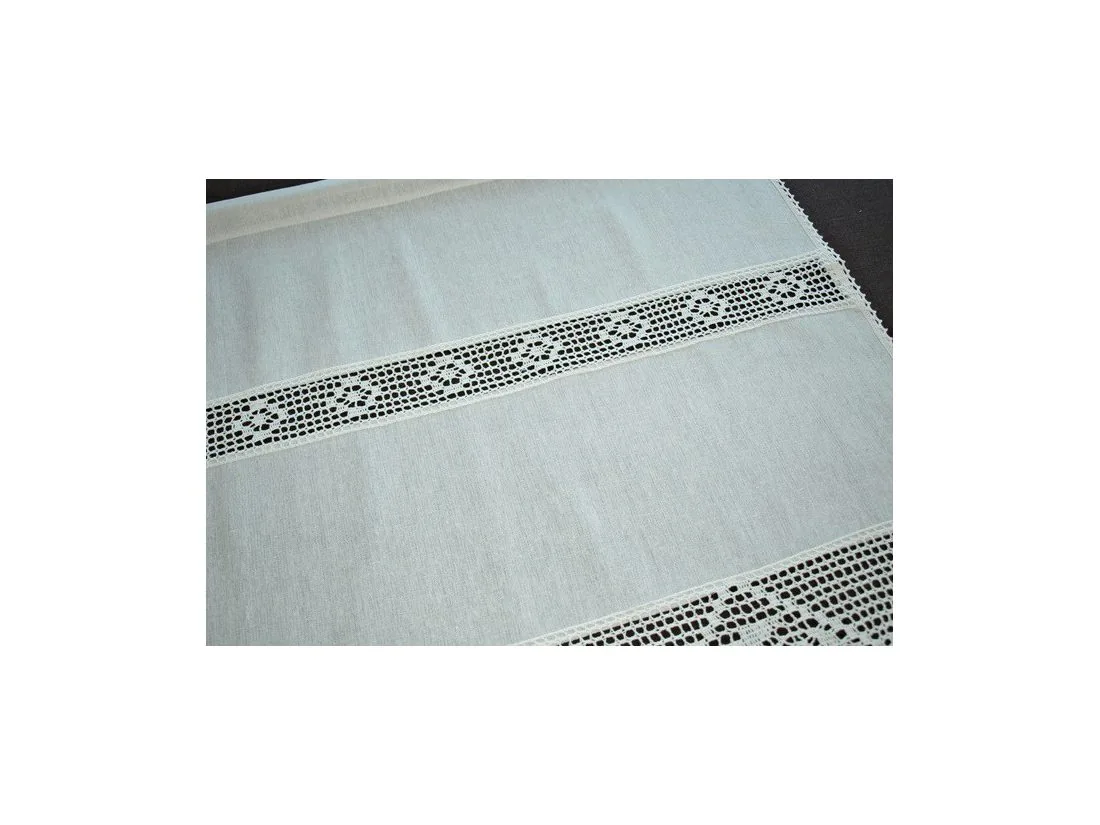 Dekoracyjny lambrekin w rozmiarze 70 x 150 cm /wys/dł/ w kolorze białym wykończona ozdobną koronką nada niepowtarzalny klimat każdej jadalni, kuchni.