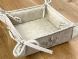 Lniany koszyk wiązany z haftem na pieczywo 20x20 cm beżowe kwiatuszki wz 023 - 1 szt