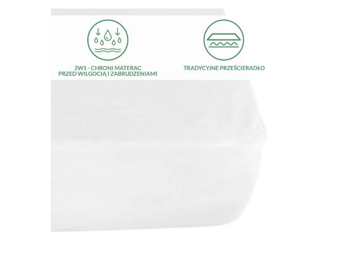 Prześcieradło ochronne 140x200 z gumką w kolorze białym to idealne rozwiązanie 2w1, które łączy funkcję klasycznego prześcieradła z niezawodną ochroną materaca. Wykonane z wysokiej jakości dzianiny jerseyowej, wzbogaconej o ochronną warstwę poliuretanową (PU), tworzy skuteczną barierę przed wilgocią, zabrudzeniami, kurzem i roztoczami, dzięki czemu Twój materac zachowa świeżość i właściwości na długi czas. Produkt pasuje na materace o wysokości do 25 cm, gwarantując idealne dopasowanie.