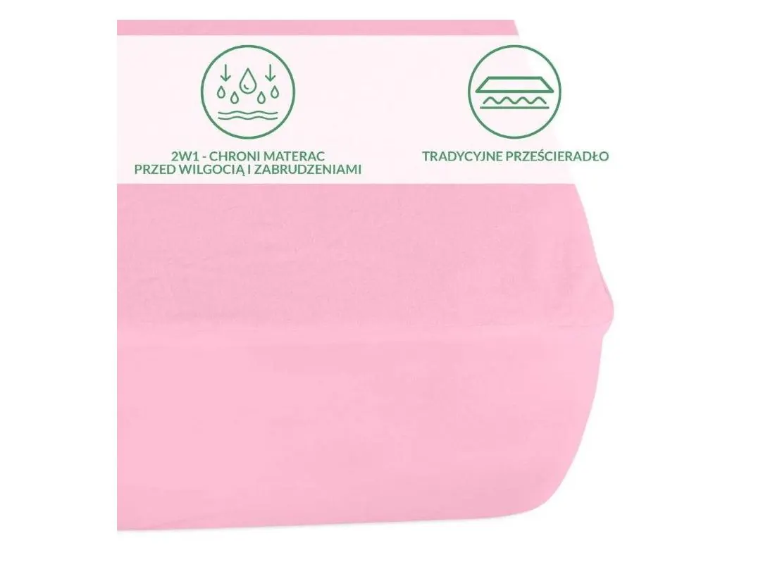 Prześcieradło ochronne 160x200 z gumką w kolorze jasnoróżowym to idealne rozwiązanie 2w1, które łączy funkcję klasycznego prześcieradła z niezawodną ochroną materaca. Wykonane z wysokiej jakości dzianiny jerseyowej, wzbogaconej o ochronną warstwę poliuretanową (PU), tworzy skuteczną barierę przed wilgocią, zabrudzeniami, kurzem i roztoczami, dzięki czemu Twój materac zachowa świeżość i właściwości na długi czas. Produkt pasuje na materace o wysokości do 25 cm, gwarantując idealne dopasowanie.