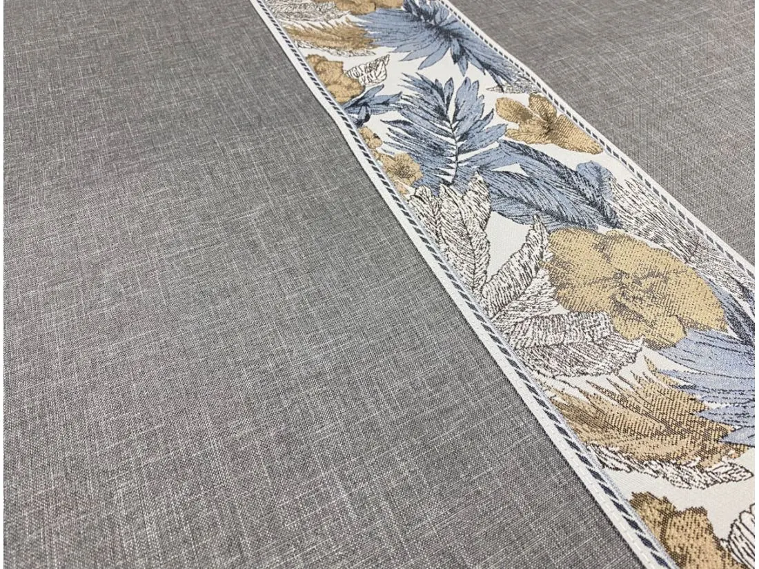 Nowoczesny Obrus Szary Popielaty 140x220 Kolekcja Flora z Pasem Żakardowym