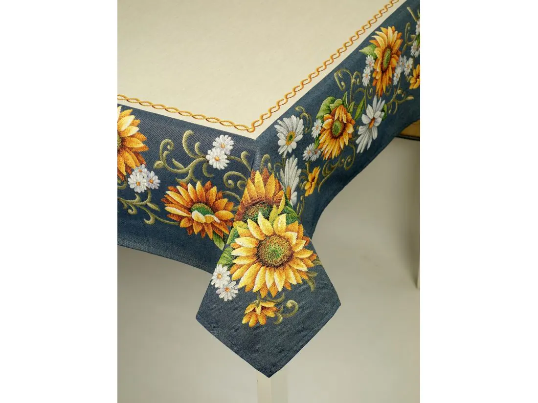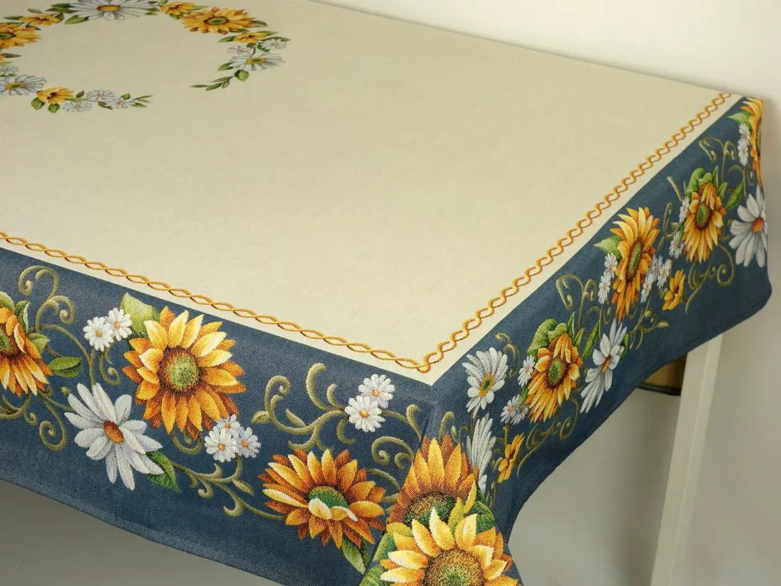 Dekoracyjny obrus gobelinowy w rozmiarze 140x240 cm, został wykonany z tkaniny hiszpańskiej 25% bawełna, 70 % poliester, 5% poliakryl - tkanina tkana żakardowa z kwiatowym wzorem idealnie podkreśli klimat każdej kuchni idealnie wkomponuje się w aranżacje salonu. Obrus w kształcie kwadratu na środku którego rozmieszczony jest wzór kwiatowy, wzdłuż brzegów rozmieszczony jest dekoracyjny kwiatowy wzór nadając niepowtarzalny urok nakładki.Niepowtarzalne wzornictwo gobelinu podkreśli wystrój każdego wnętrza gdzie bieżnik zostanie rozłożony. Jest to niezastąpiony element do salonu, kuchni, który może odmienić każde wnętrze oraz magicznie podkreślić jego wystrój. Wzornictwo nawiązuje do tradycyjnych gobelinów które dawniej zdobiły ściany w domach. Zastosowana tkanina jest tkana, gruba, nie gniecie. Różnorodność wzorów gobelinowych zadowoli każdego kto pragnie aby w jego pomieszczeniu zagościł niepowtarzalny magiczny sielski klimat. Nakładka gobelinowa może być idealnym rozwiązaniem aby odmienić wnętrze jak również niezastąpionym pomysłem na prezent dla bliskiej osoby.