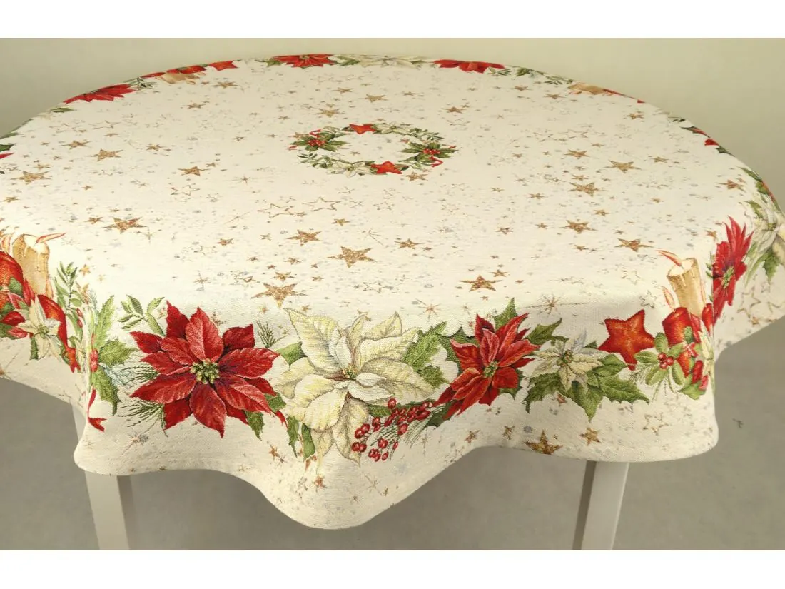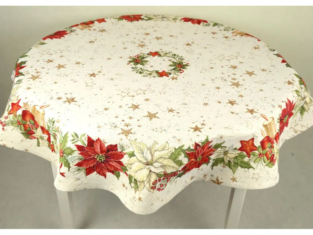 Obrus gobelinowy śr. 140 cm gwiazdy betlejemskie nr sw 294 SlodkieSny okrągły