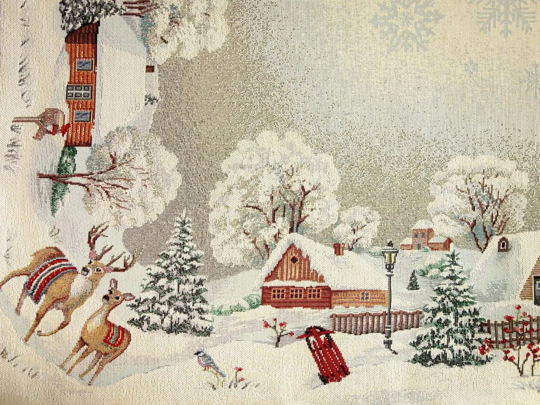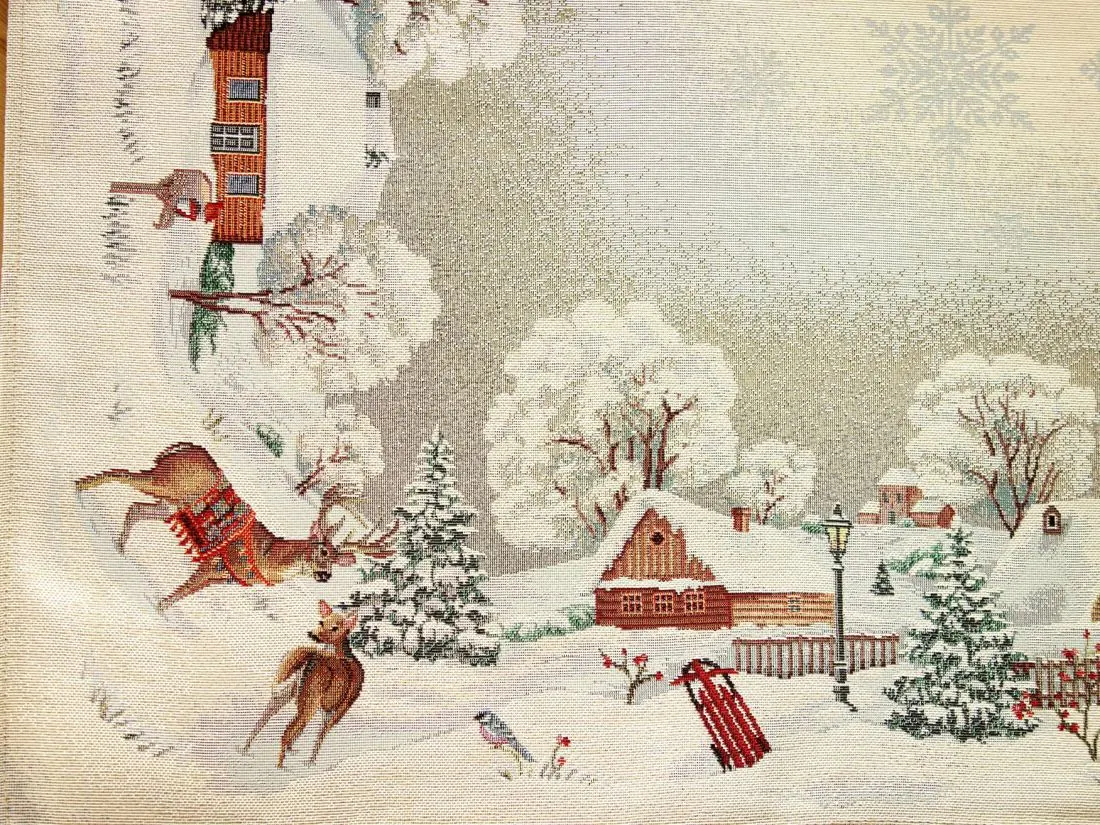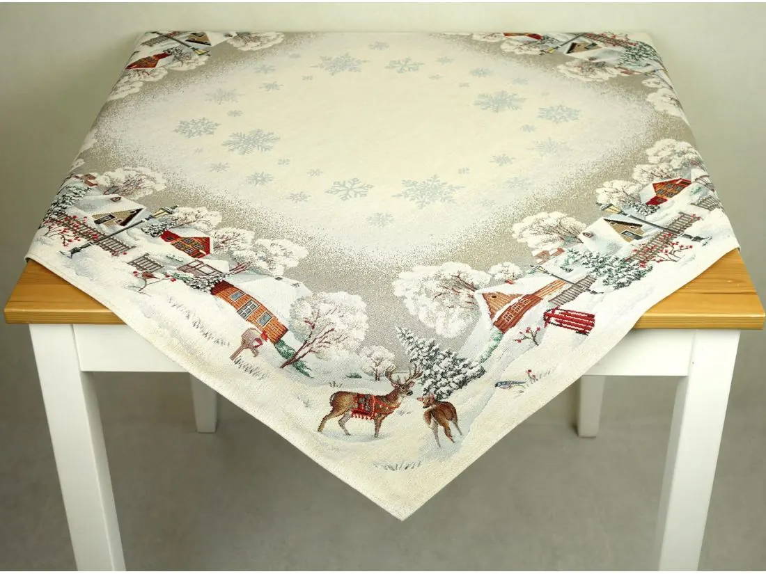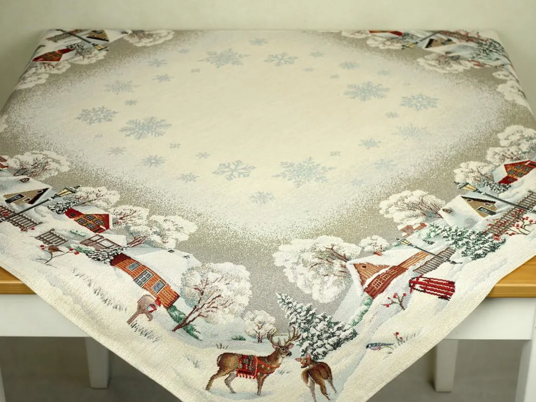 Obrus gobelinowy świąteczny 100x100 cm chatki, jeleń, sarenka zimą nr sw 287 SlodkieSny