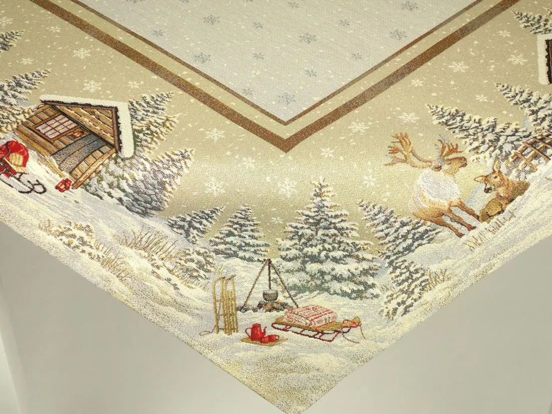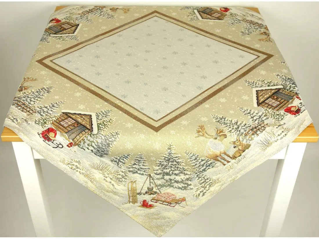 Obrus gobelinowy świąteczny 100x100 cm renifery zimą nr. 274 SlodkieSny