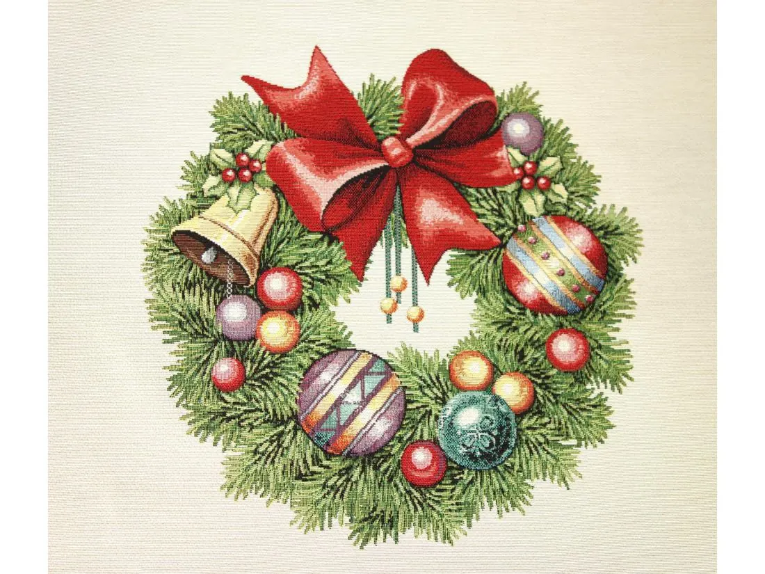 Obrus gobelinowy świąteczny 100x100 cm stroik, kokardka wz 202 SlodkieSny